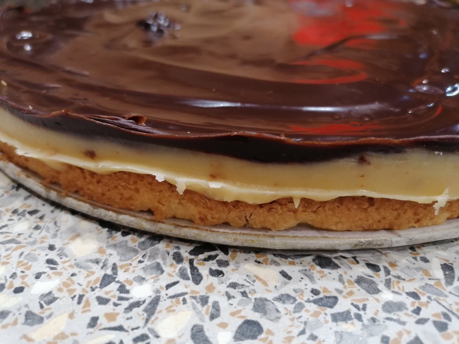 Kondenzované mlieko si zohrejeme a pridáme maslo a cukor a za stáleho miešania varíme až do zhnednutia/skaramelizovania,hotový karamelový krém nalejeme a roztrieme na upečený korpus,dáme zatuhnúť do chladničky..smotanu si zohrejeme po bod varu a rozpustíme v nej čokoládu,vymiešame do hladka a polejeme a roztrieme na karamelový krém,necháme zatuhnuť,a možme krájať..🤎