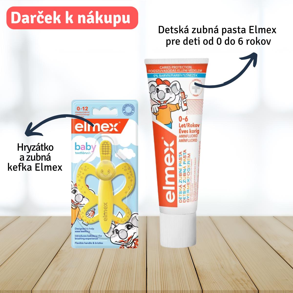 🎁 Ku každému setu od nás dostanete aj darček zadarmo: Detskú zubnú pastu Elmex 🪥 a hryzátko so zubnou kefkou!