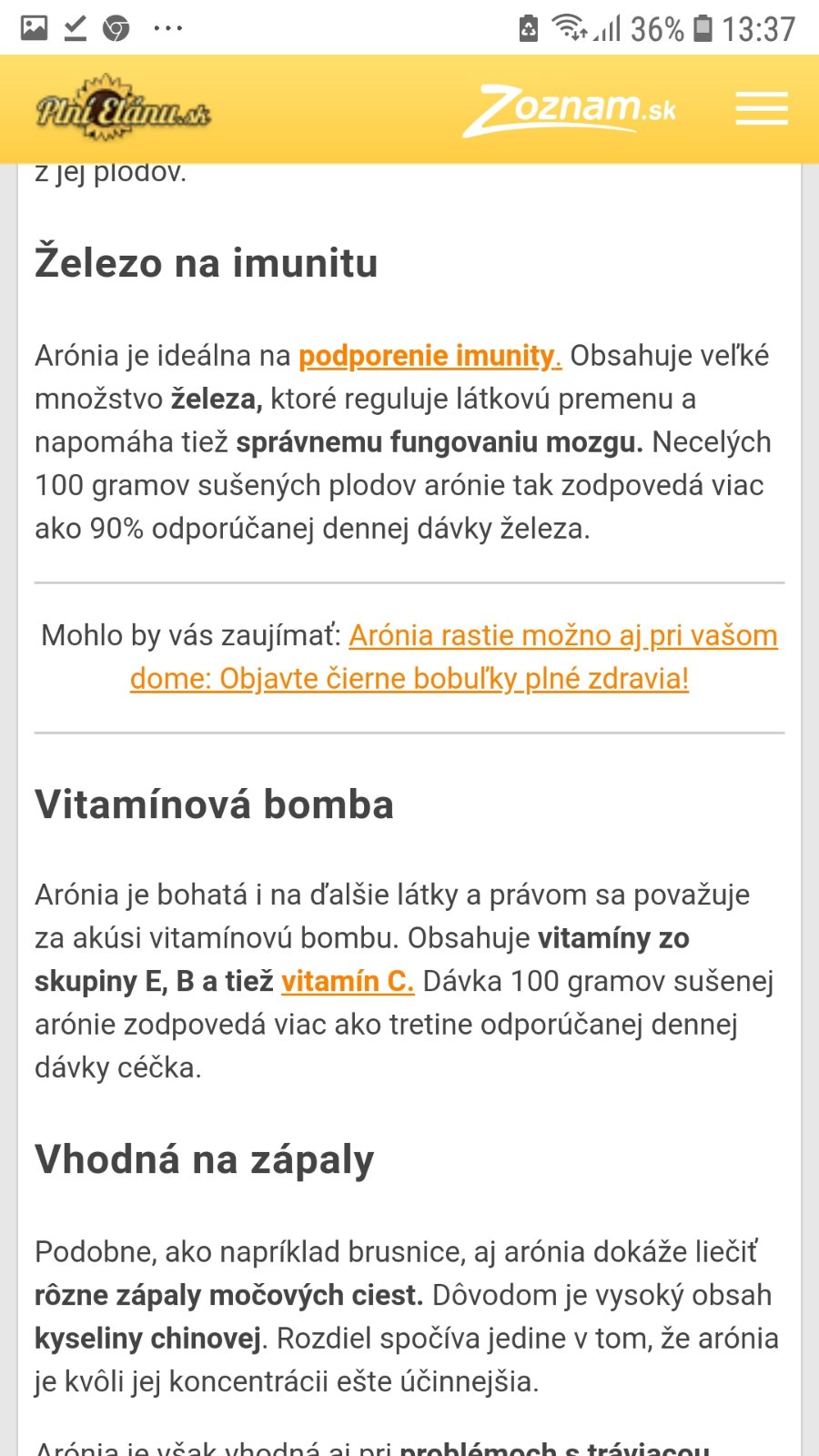 Aj mňa zaujima ta aronia, mne predpisala železo a b komplex ale priberala som z toho tak som to vysadila
