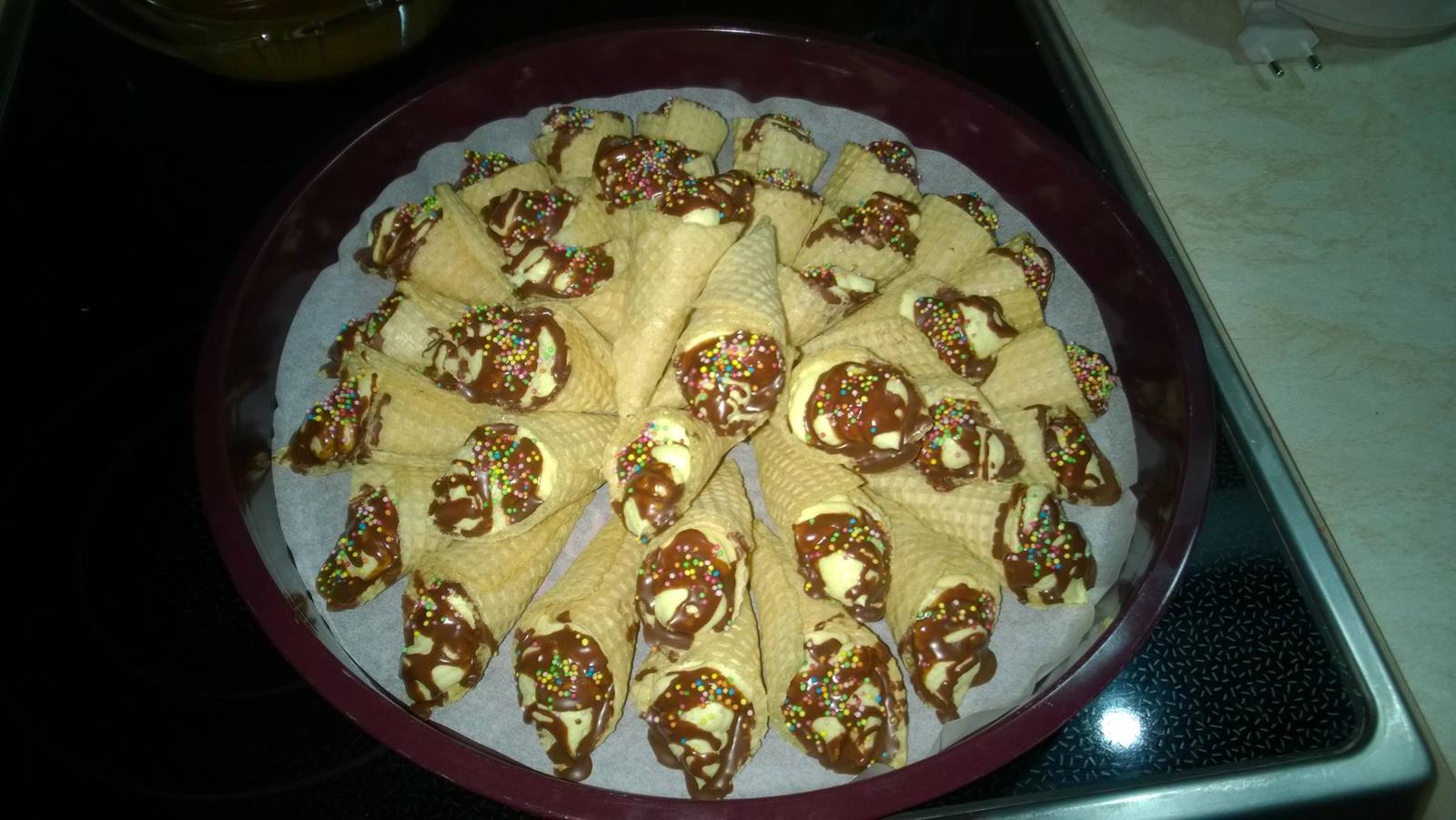 Môžeš namočiť do čokolády, alebo pokvapkať a ozdobiť cukríkmi. Najlepšie sú, keď sú vychladnuté, takže šup do chladničky 🙂 Naozaj je to mňamka 😉