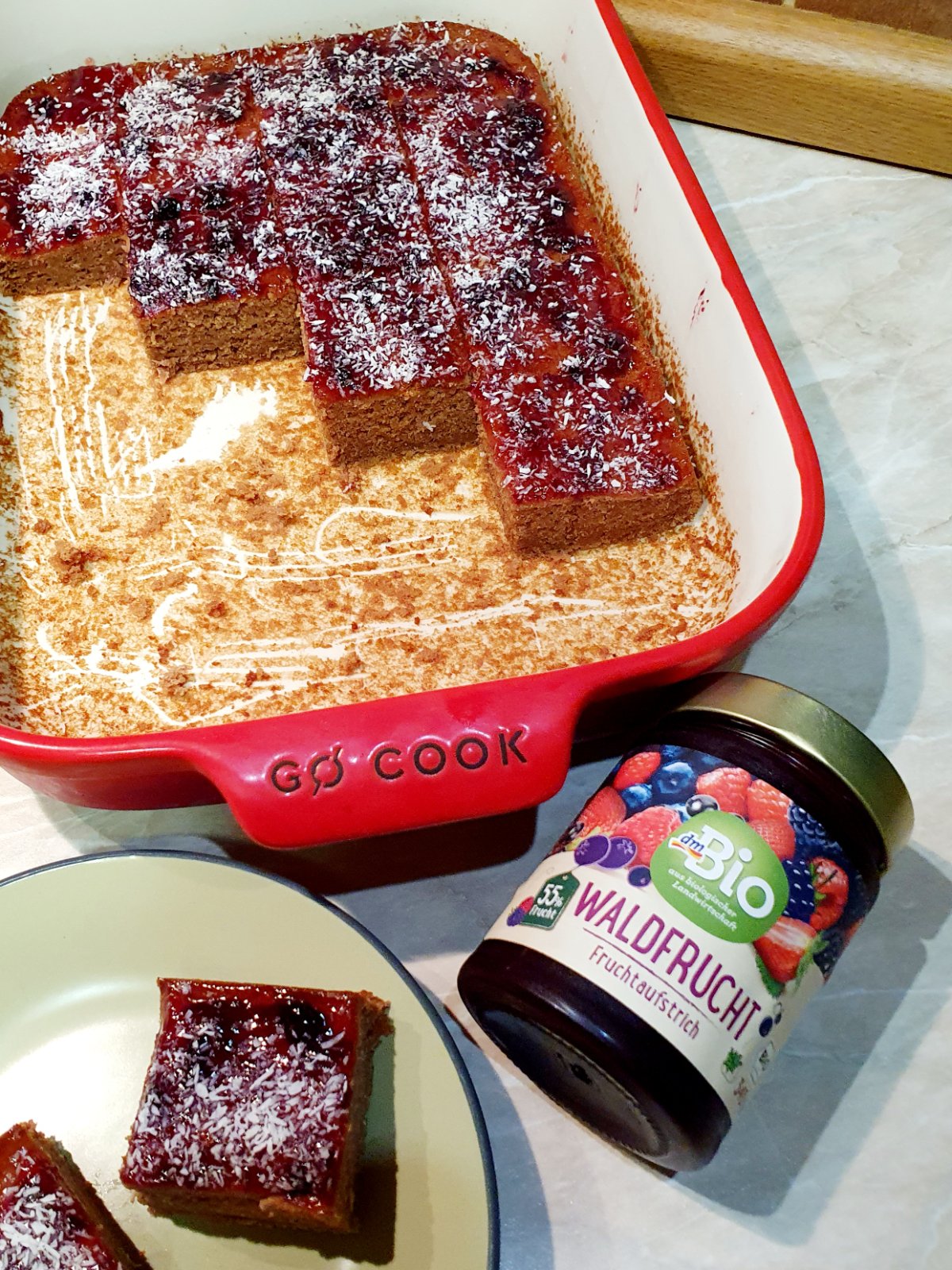 Stačilo obsah sáčku rozmiešať v 170 ml mandľového nápoja, poopekať, potrhať na panvici a večera bola na stole. Namáčali si ho do ovocnej nátierky. Tu som očakávala nejaké námietky, pretože v nátierke sú kúsky ovocia a aj zrniečka, a starší syn má čerstvý strojček na zuboch, ale nemal s ňou problém. To skôr ja som mala „problém“, lebo som nestíhala nátierku pridávať a to som mala v pláne, že ju použijem aj na koláč. Nezostalo. Nevadí, bola som dokúpiť a bol aj koláč. 😉