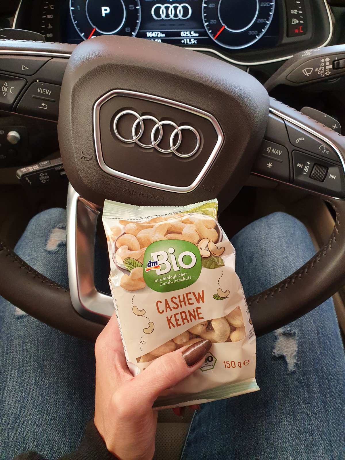 Ja som si miesto čokolády privlastnila dmBio kešu orechy, ktoré som si nasťahovala do auta ako balíček 1. pomoci, keď ma prepadne hlad, čo býva dosť často. A hrsť orechov fakt pomôže odvrátiť môj „kolaps" z hladu.