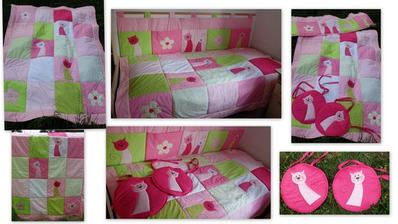 Prehozy sú šité zo 100% bavlny, plnené sú 200g vatelínom, takže môžete využiť aj ako letnú prikrývku. Rozmery, aplikácie sú na žiadosť zákazníka a od toho sa odvíja aj cena. K prehozu je možné doladiť aj zástenu, závesy, vankúše, dekorácie ...