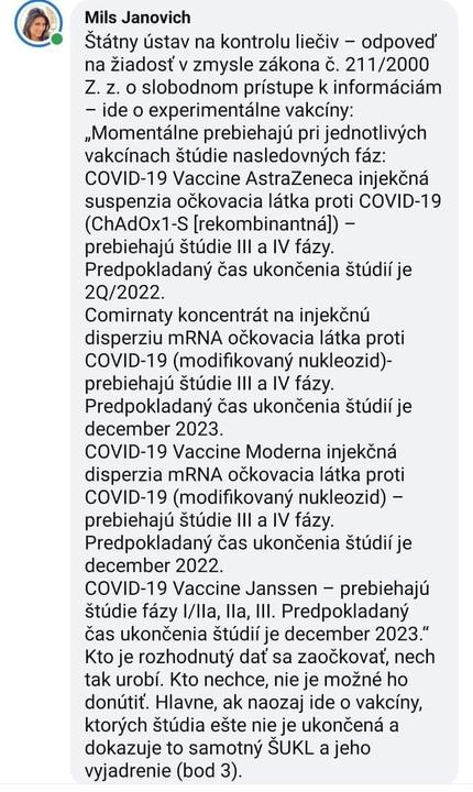 Pre tie ktoré veria že nejde o experimentálne vakcíny: