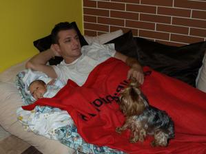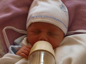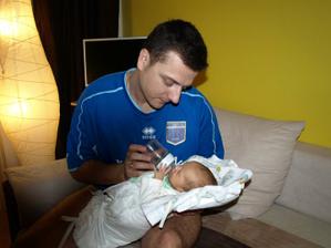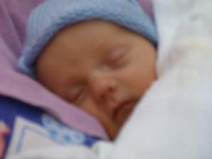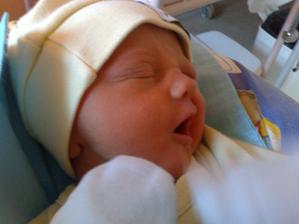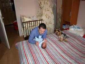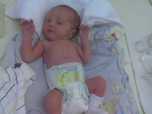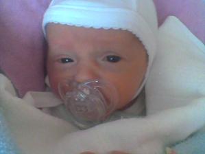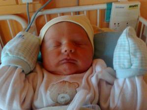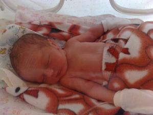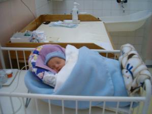 Okamžite test či to je plodovka, potom uzv, a nakoniec vyšetrenie ktoré ukázalo, že som na 1,5 prsta otvorená. Hned nariadil hospitalizáciu s tým, že dva dni ma budu udržiavať a potom ideme rodiť.Takže ma uložili na oddelení, dali na monitor a pichli infuziu (tie mi menili jednu za druhou). Nakolko monitor ukazoval bolesti a ja nič necítila prišiel ma Dr. vyšetriť opať a usudil že som otvorená už na 2,5 prsta, cíti hlavičku takže na nič nečakáme a ideme na to, aby sme neriskovali nejaké riziko infekcie u malého. Takže holenie, obviazanie noh, nasadnutie na vozík a hajde do porodnej sály. to som stihla mužovi zavolať že idem rodiť cisárskym, chudák bol akurát na obede, a skoro mu zabehlo. Tak som mu len povedala nech čaká pred porodnou sálou. Ja som na rozdiel od všetkých (maminy, manžela, kamošky) bola v pohode a smiala sa a brala všetko v pohode. Až do doby, kým som neležala na stole, začali ma natierať tou žltou vodou na dezinfekciu a všade bolo plno doktorov (koli bezpečnosti mna a malého, nakolko to bol 34.tt tak tam behali dvaja pediatri, neviem kolko doktorov a sestričiek). Tam ma premohol plač a ja som už v duchu prosíkala, nech ma konečne uspia a ja nech sa zobudím až po všetkom a konečne vidím malého. Pamatám si už len matne na manžela, ako som sa pýtala na malého. Povedal že ešte nevie že ide za ním. A ja som spala ďalej. Po prebudení v bolestiach som si prečítala najkrajšiu mms v mojom živote. manžel mi odfotil malého v inkubátore a napísal, že malý je čulý, krásny, a dýcha sám.Meria 46cm a váži úžasných 2740g. Žial ho museli pre skorý príchod na svet odviezť do Nových Zámkov (špecializovaní su na nedonosené deti)a ja som ho ani nevidela:( ale on bol mojím hnacím motorom, ktorý ma nepriamo nutil k skorému uzdraveniu, aby som mohla čím skor za ním.Moj muž bol každý den u malého a nosil mi fotky a videá aby som aj ja videla ako sa nášmu malému vedie.Bez nich by som velmi ťažko prežiala tie dlhé chvíle v nemocnici.Mam skvelého muža. V nedelu ked ma prepustili z nemocnice sme sa vybrali konečne za naším maličkým a ja som sa klepala strachom a zároven šťastím ked ho uvidím. Bolo to stretnutie neopísatelnéa krásne.Ťažko sa mi s ním lúčilo,ale vedela som, že na druhý den už budeme spolu. Od pondelka som nastupila do nemocnice k malému a začali sme sa učiť zvykať si jeden na druhého. Malý bol úžasný, velký bojovník, rýchlo sa naučil papkať a len priberal a neboli s ním žiadne starosti. Takže už vo štvrtok nás prepustili domov a odvtedy sme kompletná rodinka: Mamina, tatino, náš vytúžený Filipko a aby sme nezabudli aj náš psíček Happy.A už dosť bolo písania, teraz už len fotky. Tie hovoria za všetko🙂)))
