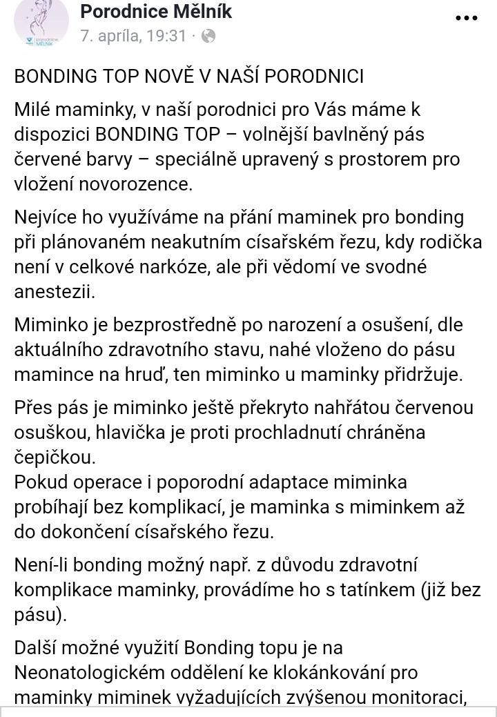 K tomu bondingu, dieťa ma byt pri matke, nemusi po narodení zufalo plakat. Ved si to vezmite logicky.. celých 9mesiacov je dieta v maternici, v bezpečí.. teraz sa narodí (takisto mu zaužívané porodne praktiky mozu vazne uškodiť), zrazu kopec svetla, cudzie prostredie, žiaden kontakt? Aky stres to dieta musi prezivat?