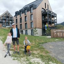 Pre účely hodnotenia sa nám ušiel apartmán Štandard v budove M. Tento apartmán tvorí spálňa a kuchyňa spojená s obývačkou, kde sa nachádzal pohodlný rozťahovací gauč určený na bežné spanie, pričom oceňujem jeho jednoduché rozkladanie. Súčasťou apartmánu bola veľká kúpeľňa so sprchovacím kútom a elektrickým radiátorom, čo hodnotím veľmi pozitívne - využili sme to. Palec hore dávame aj za oddelené veľké WC, keďže väčšinou ho šupnú do kúpeľne a nám sa to páči takto, oddelene. Súkromná, prikrytá terasa s bočným výhľadom na Liptov má taktiež svoje čaro a je súčasťou apartmánu. Vybavenie kuchynky bolo postačujúce. My sme variť pri polopenzii nestihli, ale v rámci kontroly, všetko na špagety som našla, tak ako aj chladnička, či kanvica boli k dispozícii. Milé mi prišli aj čaje, soľ, cukor či korenie, ako taký základ v kuchynke. Apartmán bol veľmi príjemný, čistý, moderný. Taký škandinávsky štýl (však posúďte sami - viď foto). V rámci baby-friendly rezortu oceňujem na ubytovaní pripravené nové knižky pre rôzne vekové kategórie (v prípade zlého počasia by sa iste zišli), detskú kozmetiku a dostatočnú ponuku televíznych kanálov, vrátane tých detských. Výťah a parkovanie priamo pred apartmánovým domom sú vítané bonusy. Poloha apartmánu popri pripravenej detskej zjazdovke v kopci, trochu ďalej od atrakcii a stravovania, nám padla vhod. Inak by sa deti s nami odmietli prechádzať, kdesi mimo atrakcií, len tak. Zabudla som dodať, že súčasťou nášho testovacieho tímu boli aj 8-ročná dcéra a 5-ročný syn.