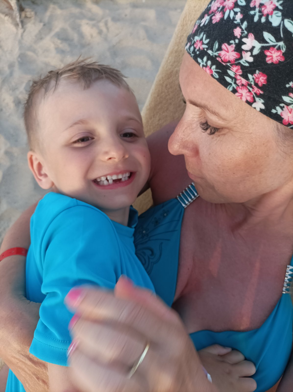 Miskov druhý zubok je vonku..pri skoku do bazéna,čiže sme ho vyše hodiny hľadali..lebo Miško bol úplne nešťastný,že zubkova vila ho nenájde pod vankúšom...