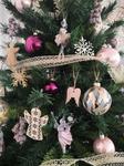 @vilma7 tak zatial takto 🙂, ozdoby kupujem priebezne, co sa mi zapáči, bordove gule mam v 3 velkostiach, ruzove v 2 velkostiach, priesvitne s trblietkami jedna vel.a priesvitne s pasikmi su nove, kupovane v Pepcu. Vsetky gule su zo skla. Baletky/plast/ tiez pepco, prip. KIK, odtial mam aj drevene kridla, hlava sobika. Celkovo mam rada drevene, prirodne ozdoby 🙂