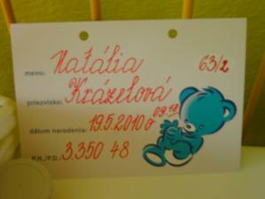 Natalka sa narodila 19.5.2010 o 9.18 cisarskym rezom, pretoze sa mi 2 tyzdne pred terminom otocila ritkou a pani sdr. mi ako prvorodicke nariadila SC, mala 3350g a 48cm, je zdravucka, krasna a robi nam iba radost 😀