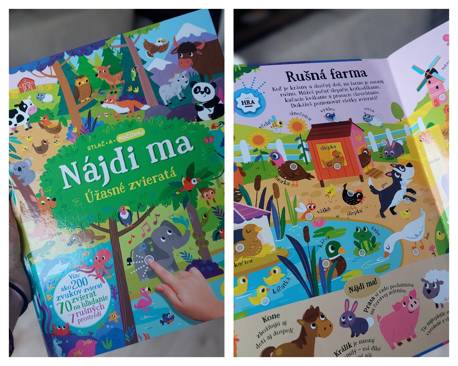 Naša najmenšia Juditka miluje kreslenie a knižky. Úplne ma očarila a som rada, že aj ju, knižka Nájdi ma. Zvuková knižka, kde dieťa hľadá zvieratká, prípadne počúva, aké zvuky vydávajú je ozaj skvelá. Farebná a pútavá.