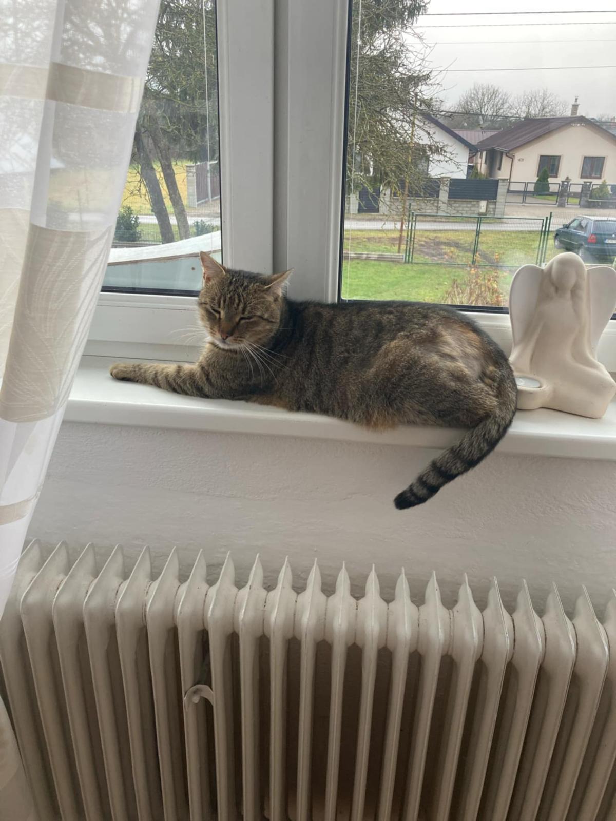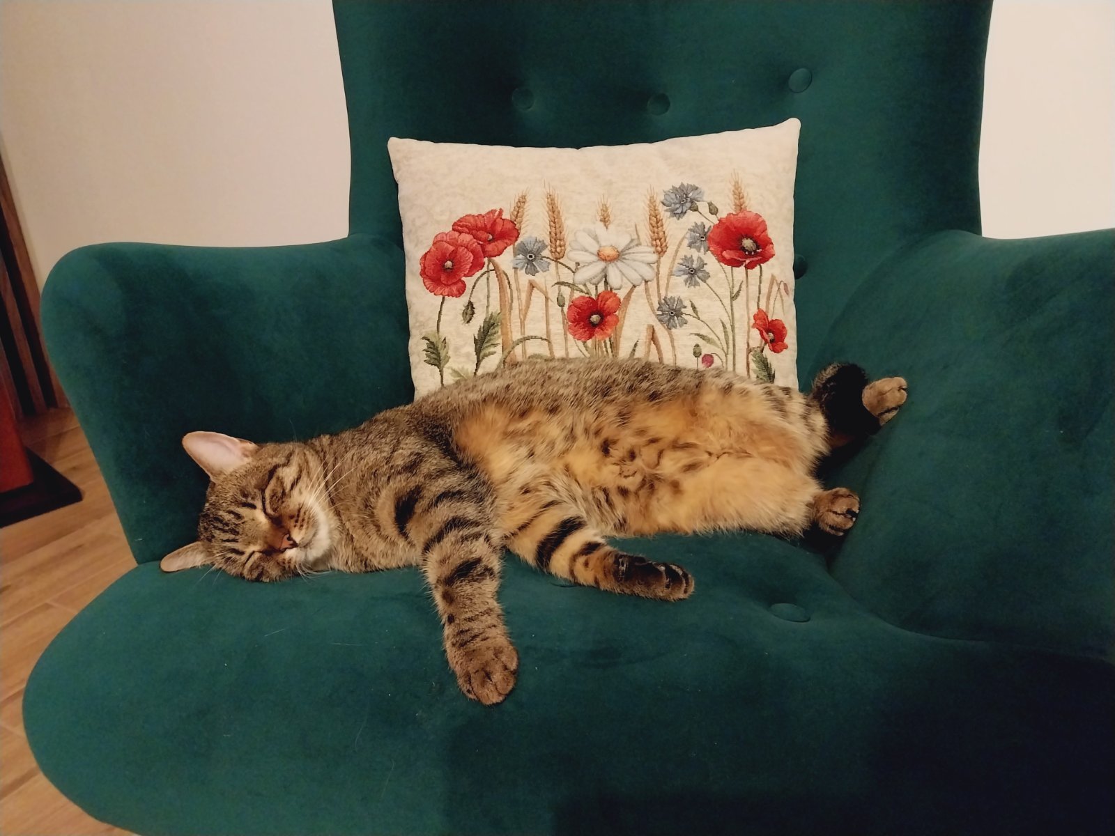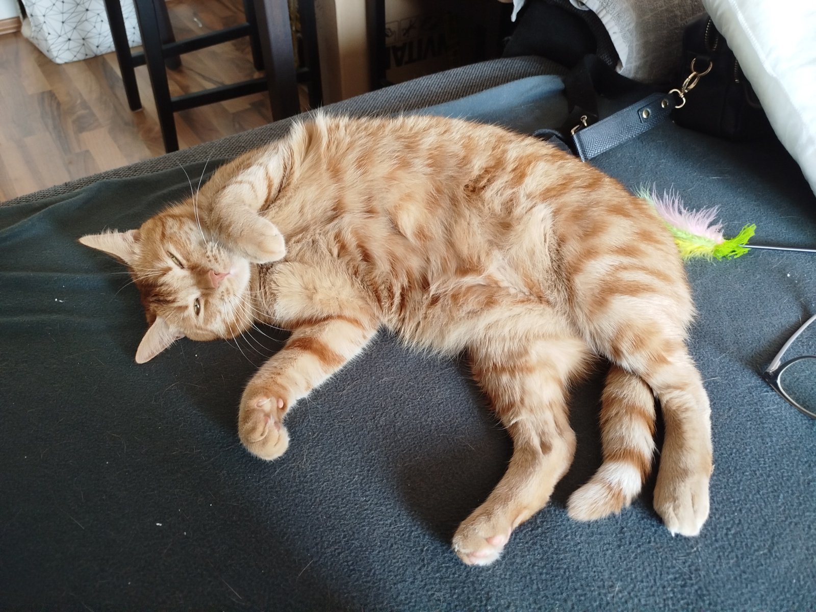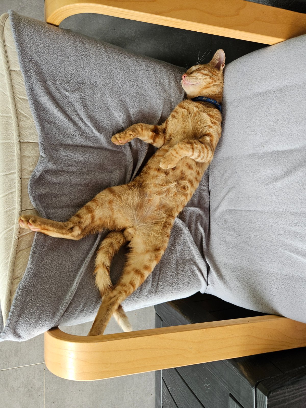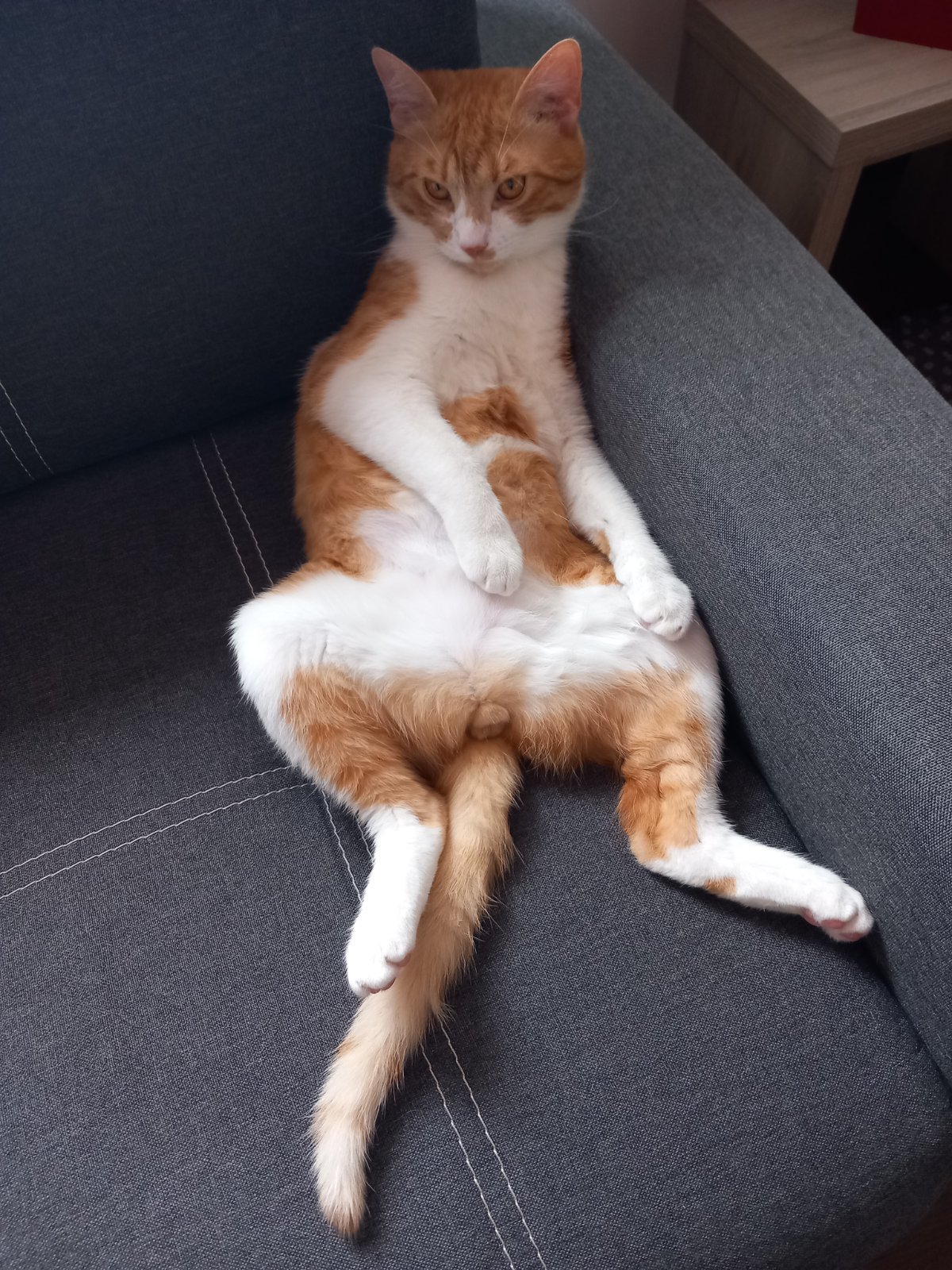 Máme kocúrika Murka. A keďže ho minulý rok zrazilo auto, tak takáto poloha je mu prirodzená 😁