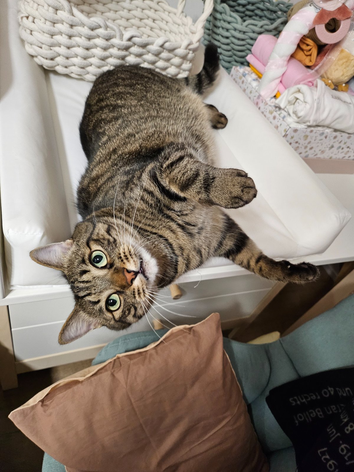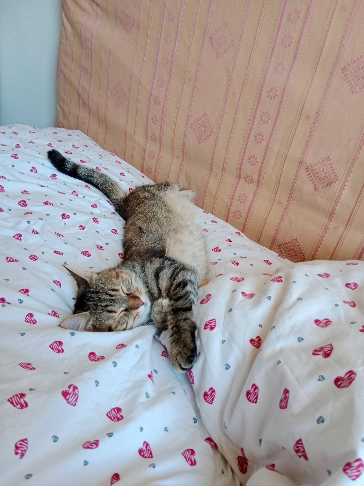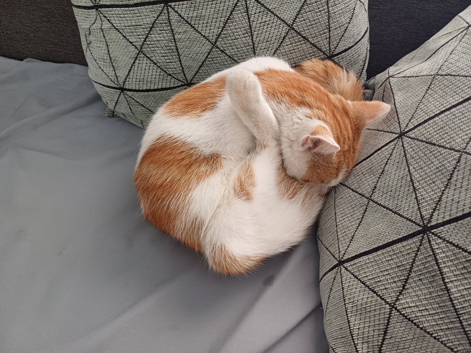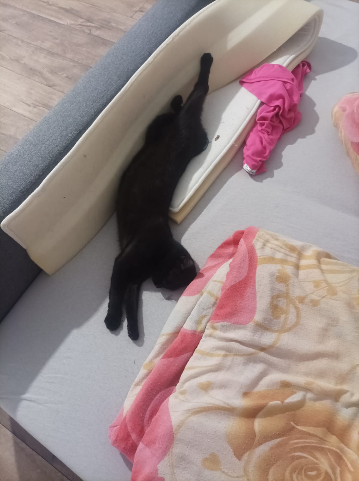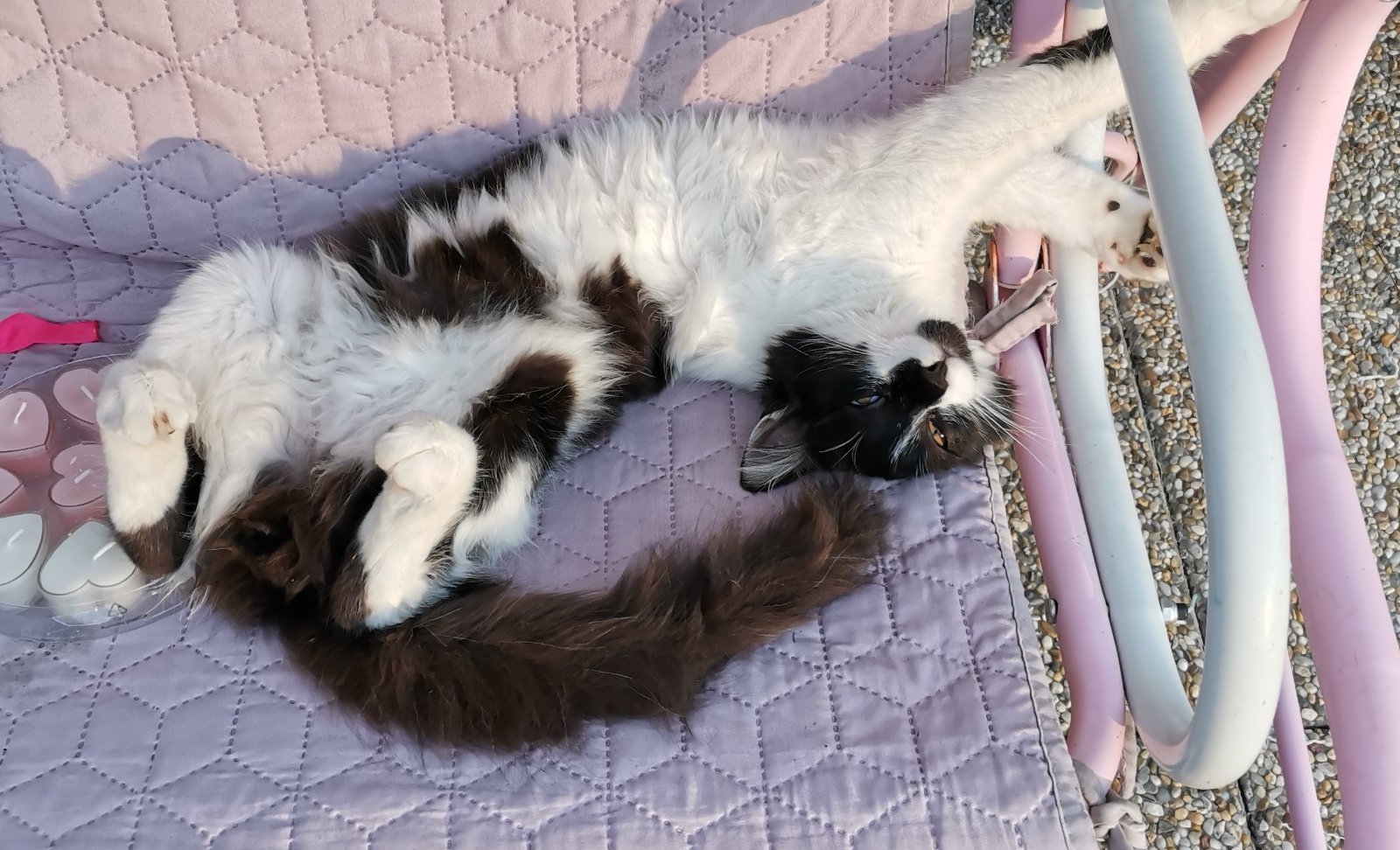 Máme kocúrika Murka. A keďže ho minulý rok zrazilo auto, tak takáto poloha je mu prirodzená 😁