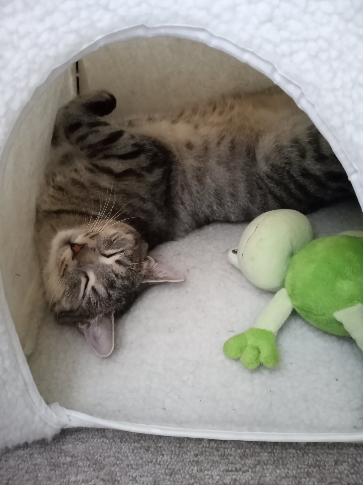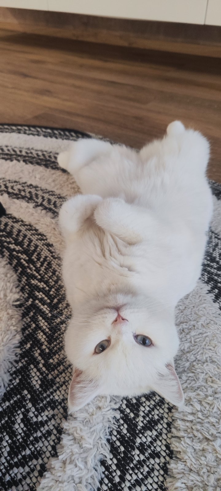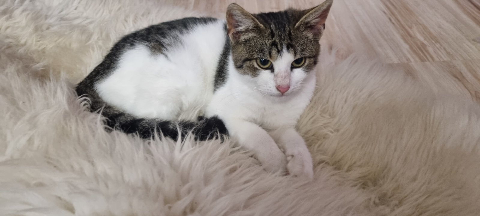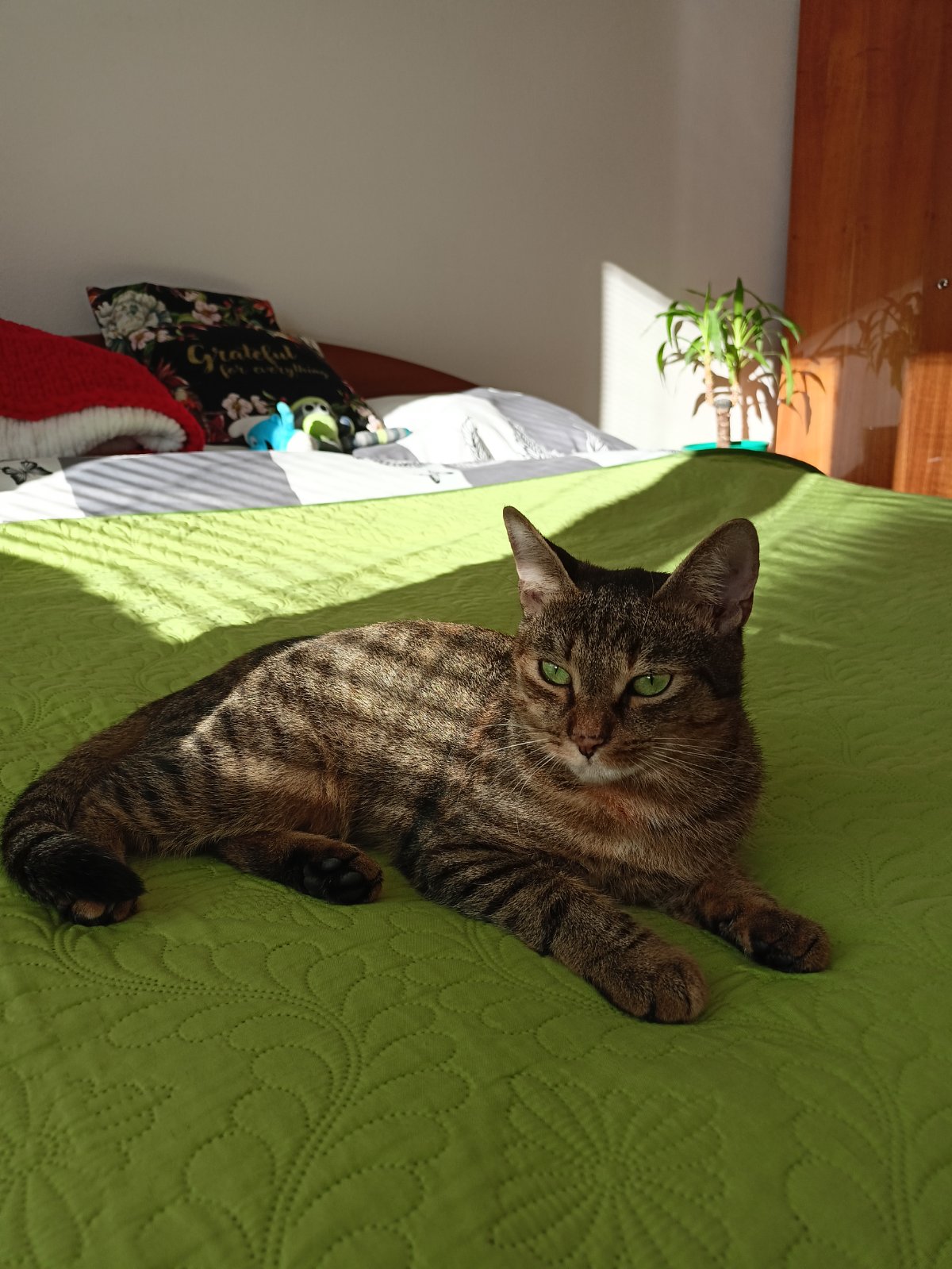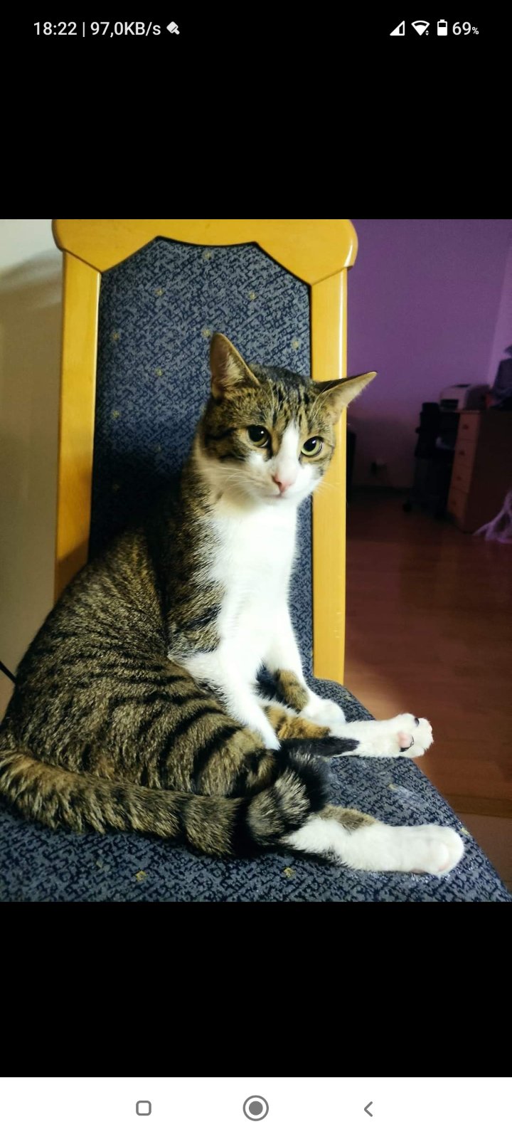 Toto zlatíčko nám pred rokom doslova nasadlo do auta a odvtedy nám robí radosť. Nazvali sme ju Najda. Veľmi vďačná kľudná ciculiena, ktorá neškriabe a rada sa mojká. Mlsky by si vychutnala lebo je to poriadny gurmán.