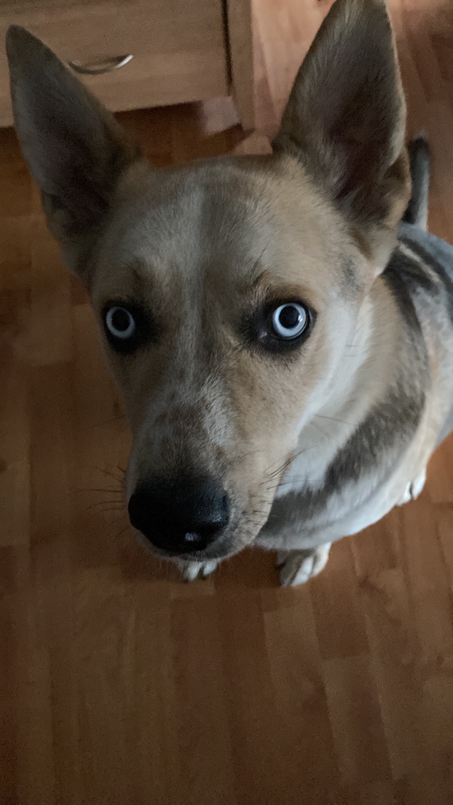 Náš husky Jackie... má vlastnú hlavu a vlastné názory a neznáša keď mu zabudnem dať pamlsku pred spaním 😄😊