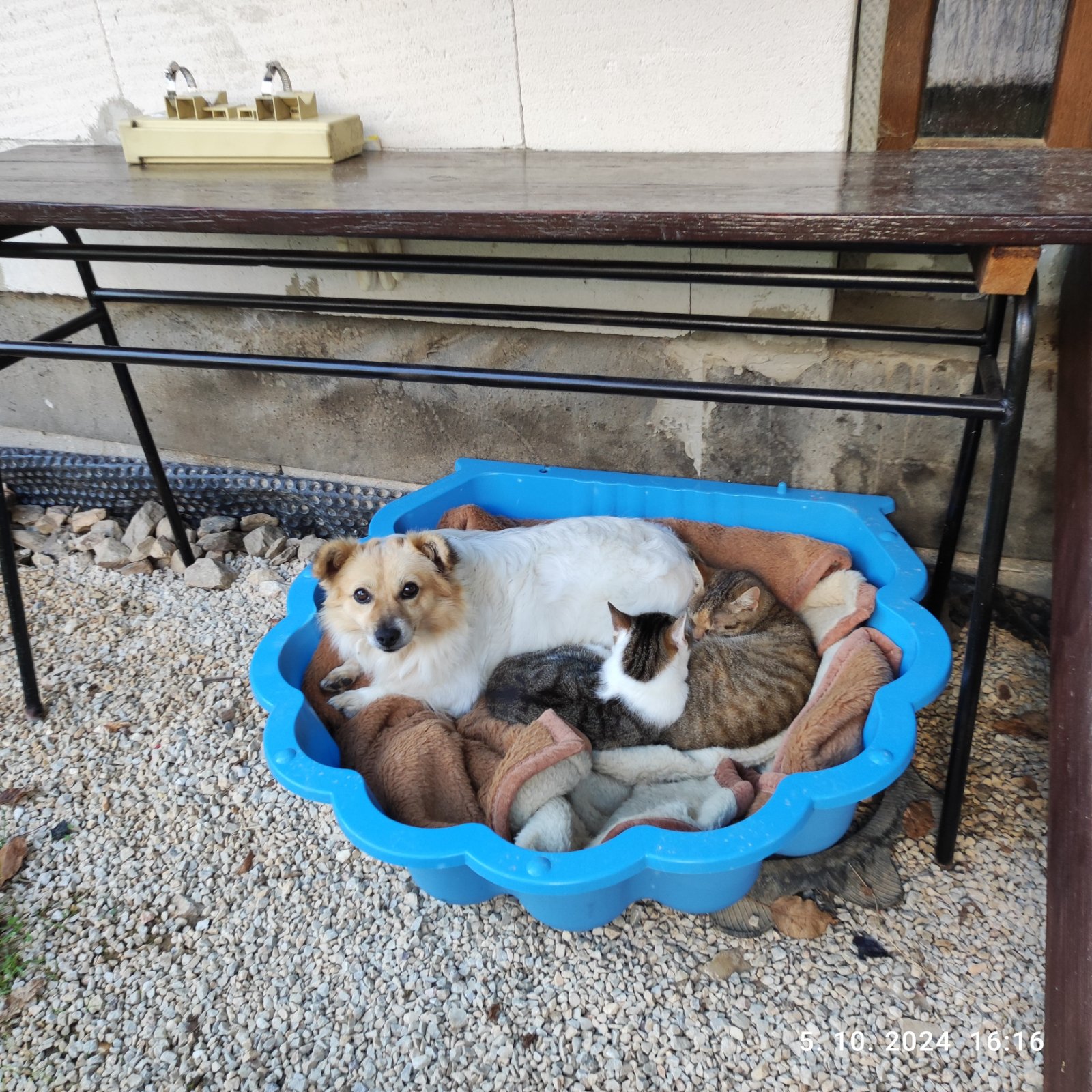 Máme 1 mačičku volá sa Lola, 2 kocúrov Garo a Julo. Tiež 2 fenky Aishu a Trišu.