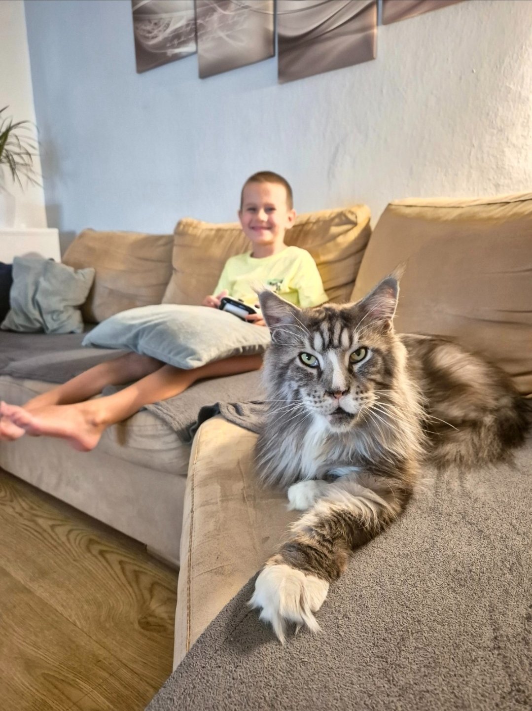 Mame doma kocura..je to veľký maznáč,ale len keď chce...no s našou 3ročnou su parťáci 😊 určite rád ochutná nové maškrty