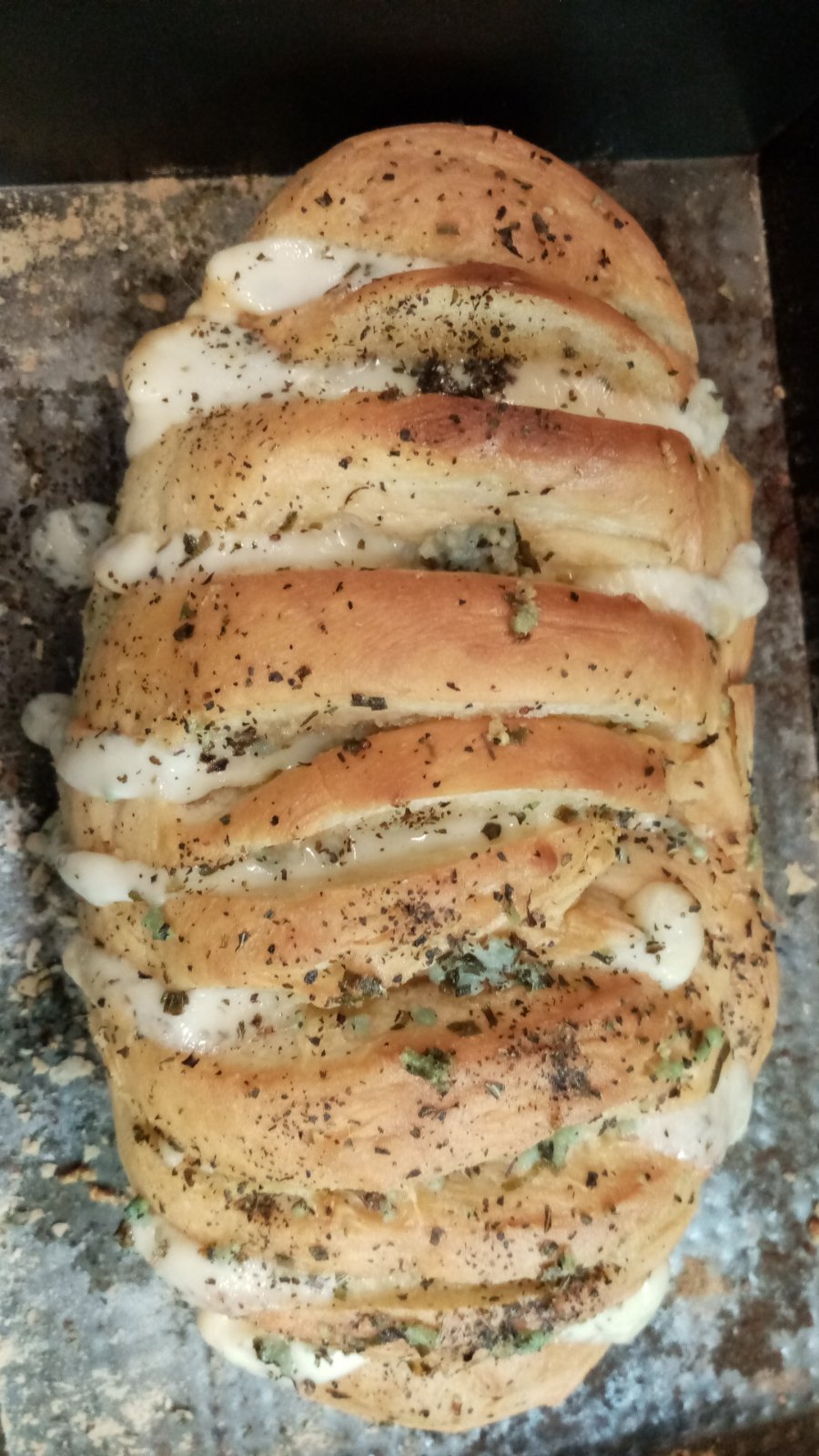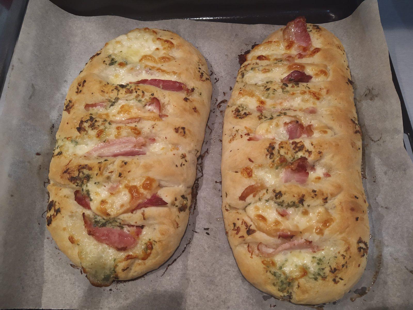 Normálne urobíme kvások z cukru a droždia a miesime ako všetky kysnuté cestá.ked cesto vykysne urobíme bochník narežeme a do rezov dáme syr aký máte pôvodný recept je s mozzarellou ale môže byť hociaky.