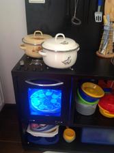 Kuchynka vznikla rukami môjho manželíka z nepotrebneho písacieho stola, ktory bol určený na "odpis"... Nam vsak robi veľkú radosť uz niekoľko rokov 😉