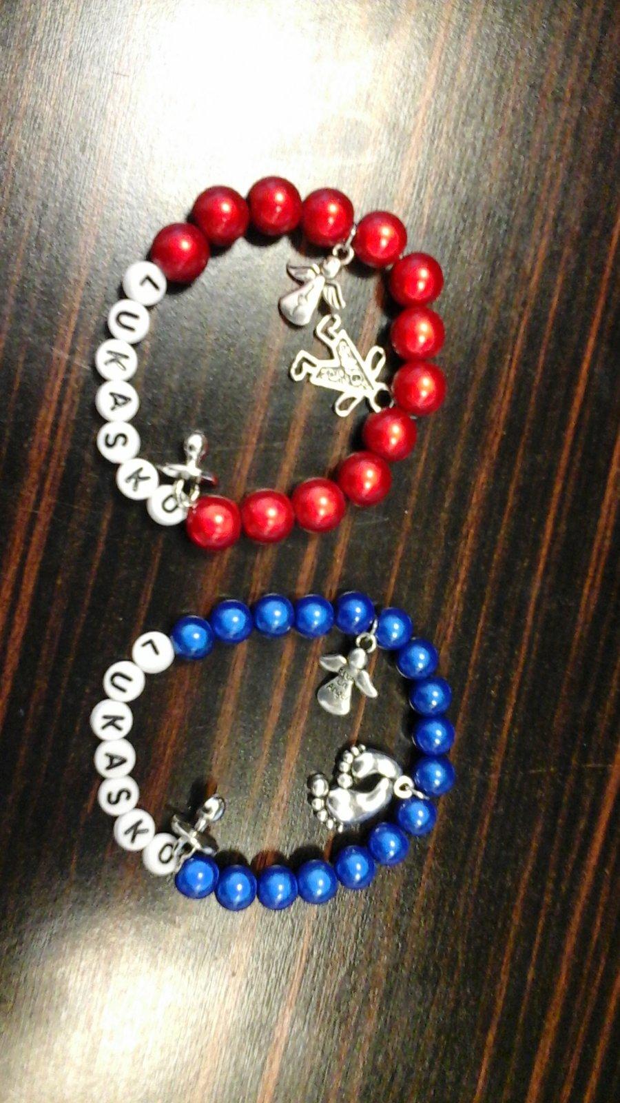 Ahoj, urobíč mi náramoček? červený s tými troma príveskami? anjelik, cumlík a nožičky?