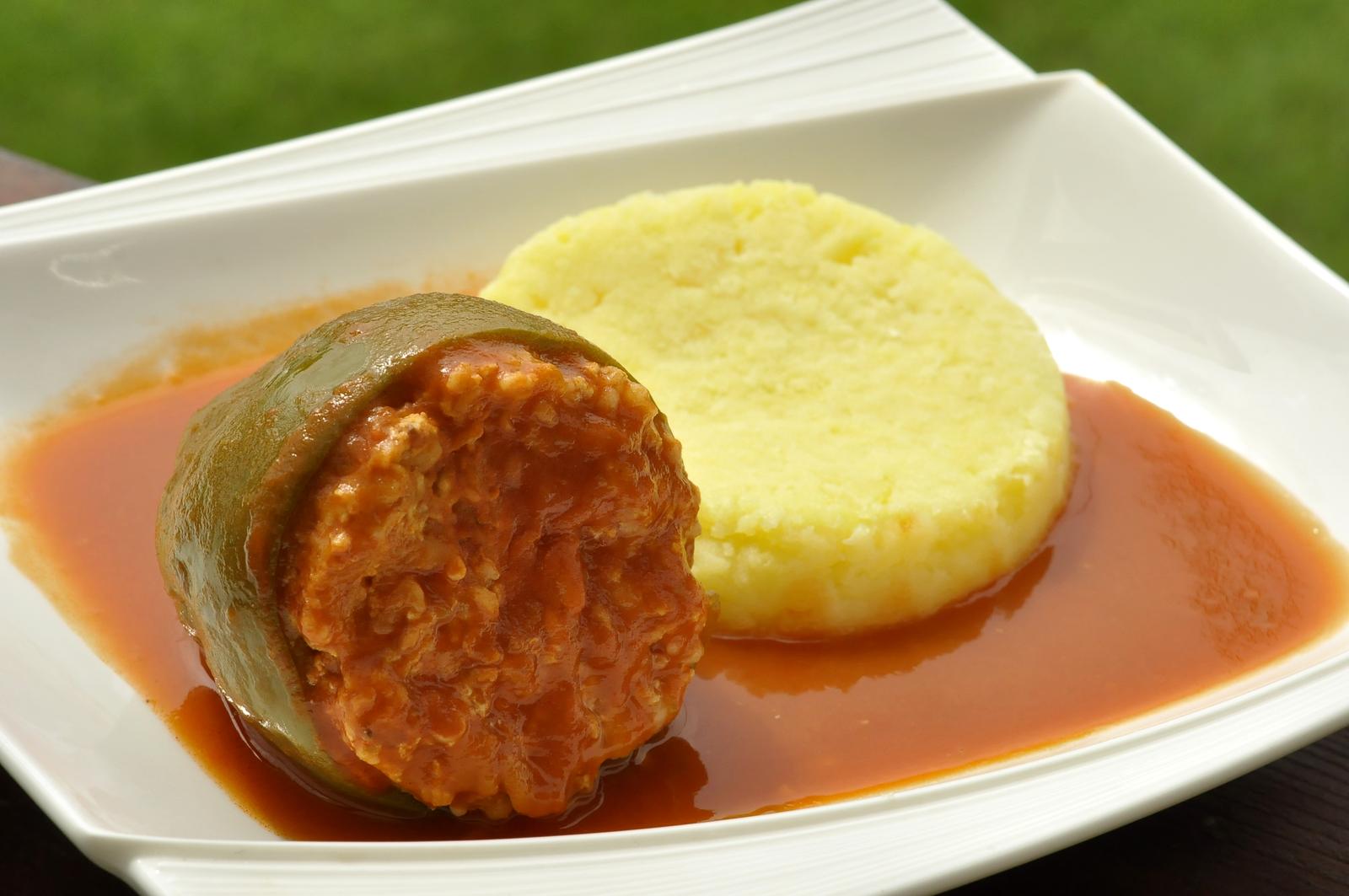 Paprika plnená bulgurom a údeným tofu v paradajkovej omáčke