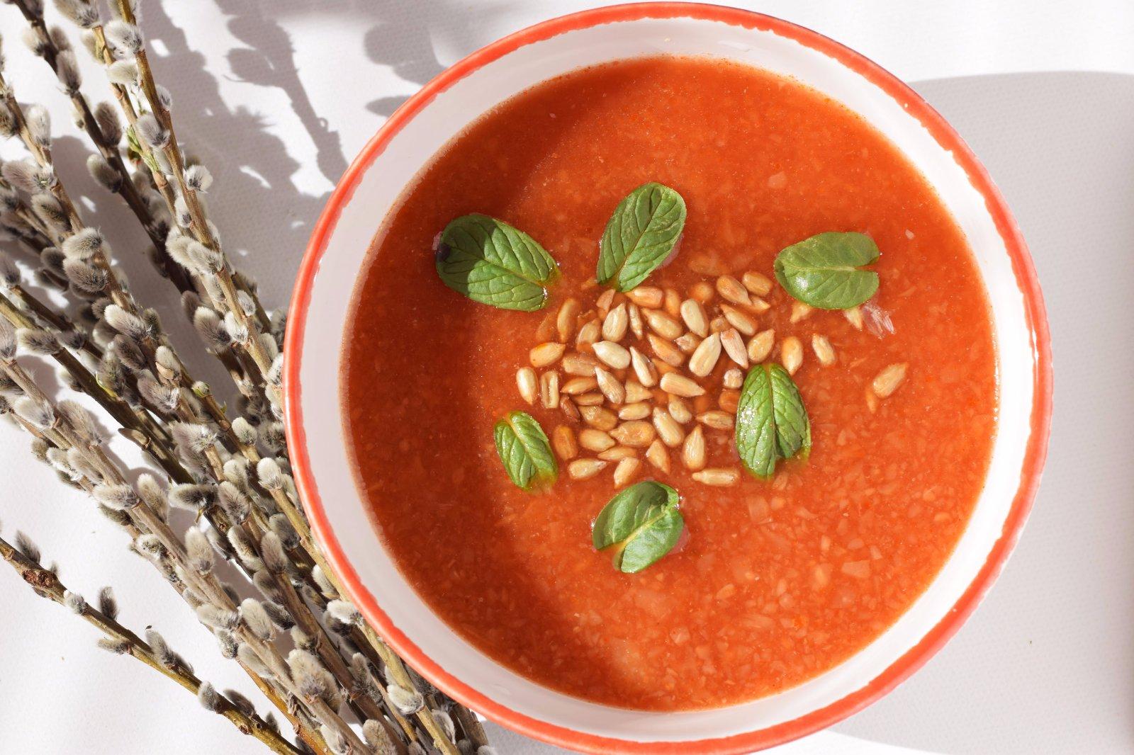 Kapustovo-paradajková polievka so slnečnicovými semienkami