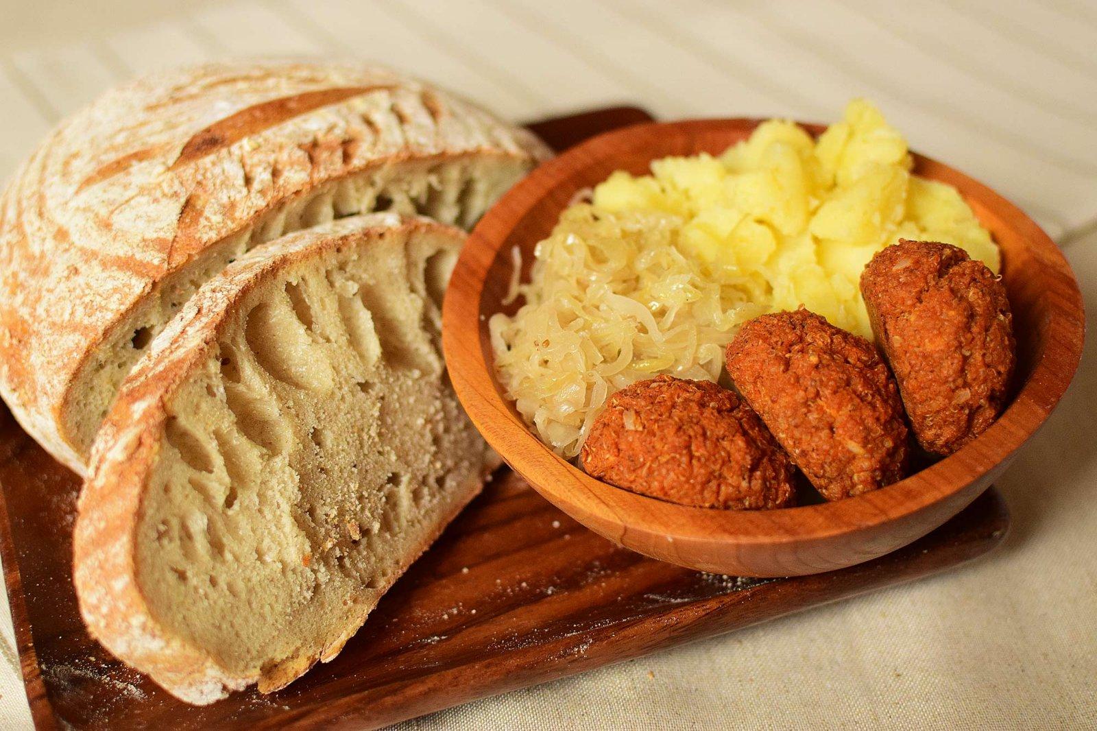 Bezlepkové quinoa guľky s kyslou kapustou a varenými zemiakmi