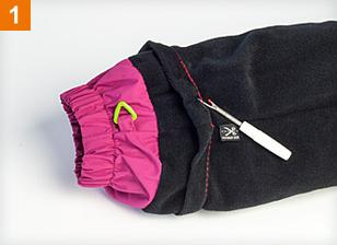 - Na koncoch nohavíc regulovateľné pútko pre pretiahnutie cez obuv