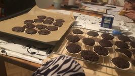 som robila: pernikove korenie, mandle mlete, lieskovce mlete , cukor vanilk cukor skorica muskat orech kakao kyp prasok a tri vajka... vsetko zmiesat dat na oblarky