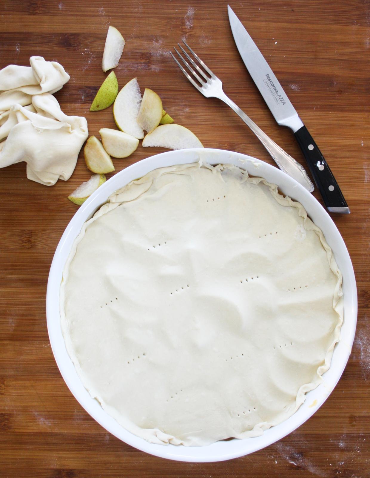 Do panvice nasypte cukor a maslo a nechajte postupne rozpustiť. Keď má zmes peknú, zlatistú farbu, pridajte med a soľ. Premiešajte, aby sa suroviny spojili a vlejte do nádoby, v ktorej budete piecť. V tomto prípade sú vhodnejšie formy s pevným (alebo naozaj veľmi dobre tesniacim) dnom, aby vám náplň "neutiekla". Na karamel naukladajte na tenšie plátky nakrájané hrušky a prikryte lístkovým cestom. Odrežte nadbytočné časti a prepichajte jemne vidličkou, aby mala kadiaľ unikať para.