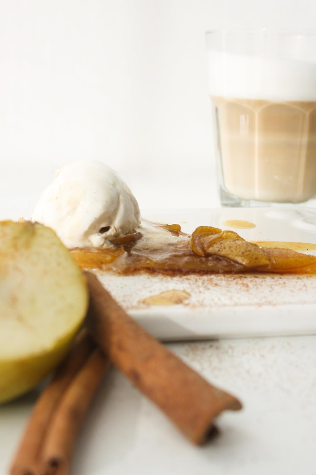 Pečte v rúre na 200°C cca 30 minút, kým nebude lístkové cesto viditeľne upečené. Vyberte z rúry a nechajte postáť asi 5 minút. Následne prikryte tanierom, na ktorom dezert plánujete servírovať a rýchlym pohybom pretočte (tak, aby sa dezert preklopil lístkovým cestom nadol do taniera). Podávajte ešte teplé, ideálne s kopčekom vanilkovej zmrzliny jemne poprášené škoricou a poliate cukrovým sirupom, ktorý pri pečení vznikol.