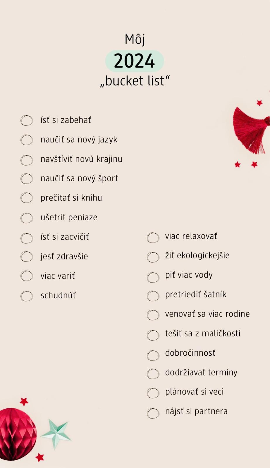 Ja na predsavzatia veľmi neverím, ale tento zoznam sa mi, veruže, páči 😍 Okrem toho hľadania partnera by sedelo viac-menej všetko 😉 A čo vy?