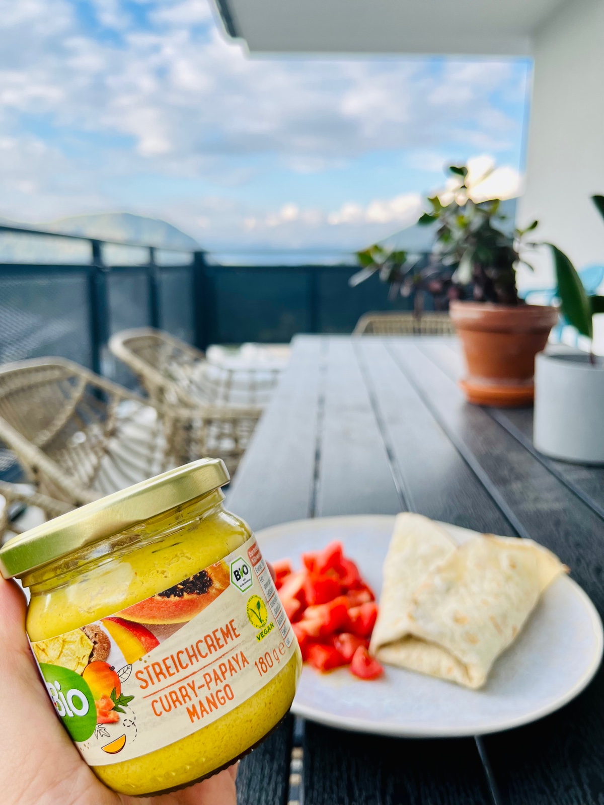 Kombinácia tortila, pečená zelenina, parmezán a táto #dm nátierka je jedno neskutočné kombo, ktorému vôbec nič nechýba k dokonalosti. A hoci som voči nej bola skeptická - lebo veď mango, papája a kari?, bola to láska na prvé ochutnanie a odvtedy ju máme doma takmer neustále 😍