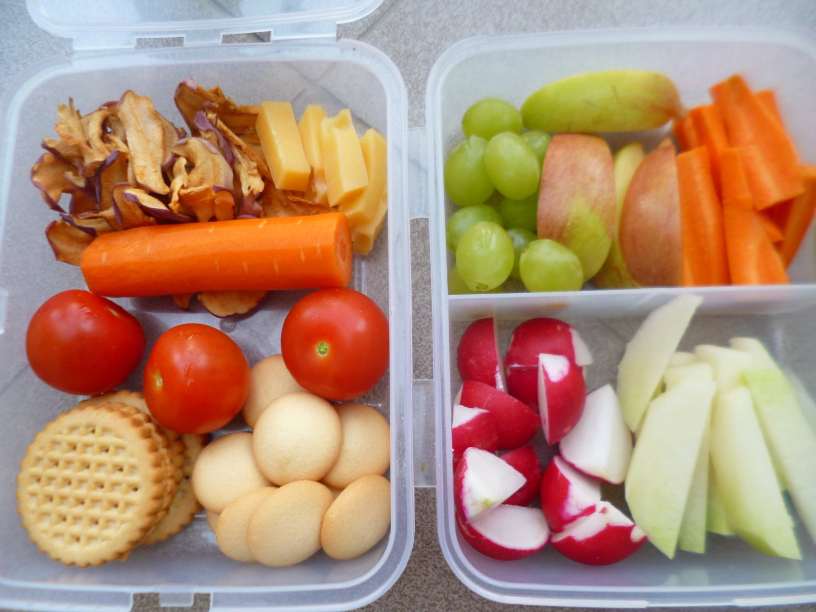 najlepsie na vylet suchy roztek a v dozicke zelenina a ovocie🙂 ale samozrejme aj kapsicky🙂