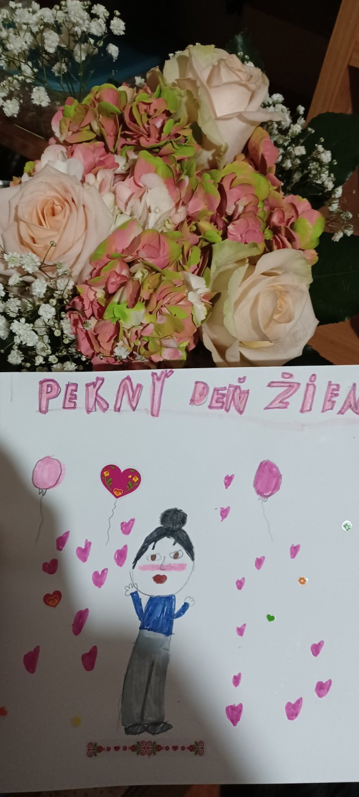 Dnes ma potešila kytica od muža a moja dcérka ktorá mi robí radosť stále 🥰🥰🥰