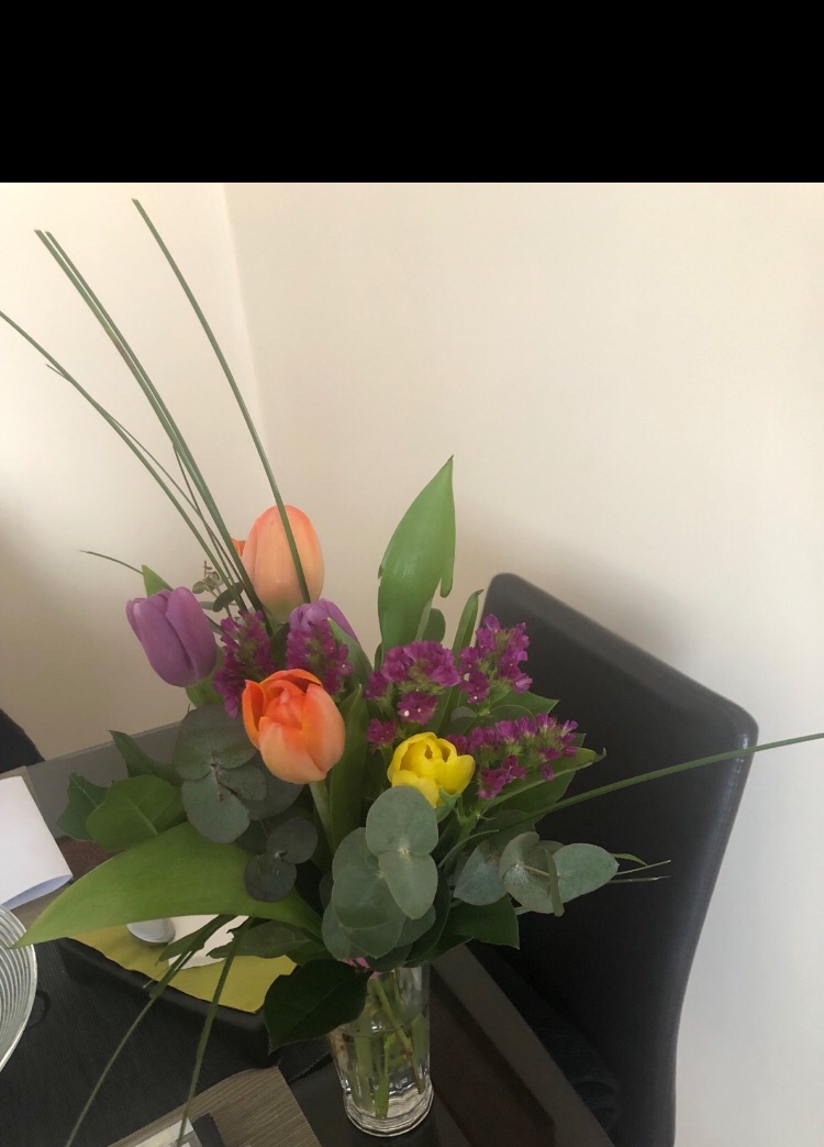 Kvety od mojho manzela a syncek kooonecne nemal teplotu cely den, od stvrtku teplotuje vdaka kovidu🌷🤭