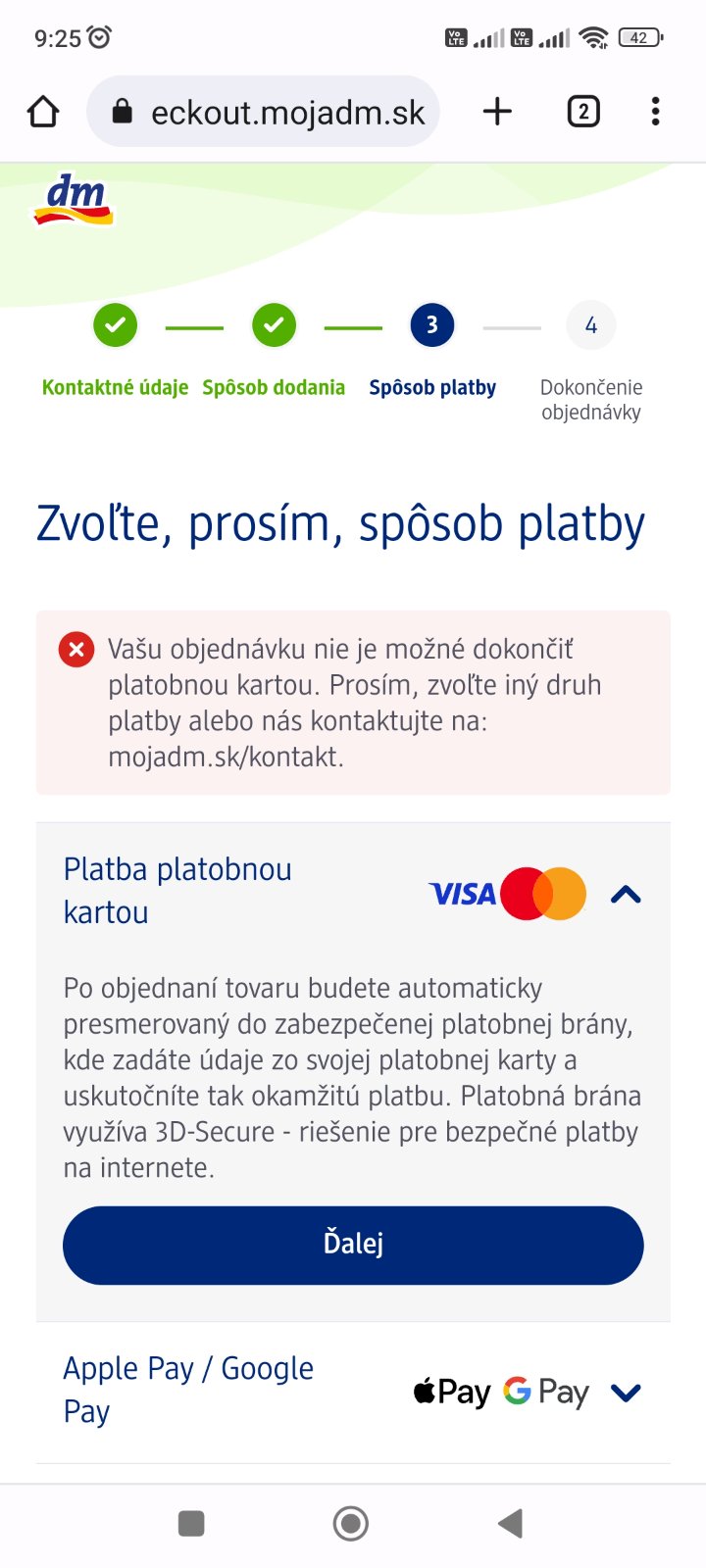 @nesvadbovo dakujem mne proste dm dnes nejde nechapem, ani banka nevidi problem ani dm zakaznicka podpora.objednavala som aj ine eshopy a idu