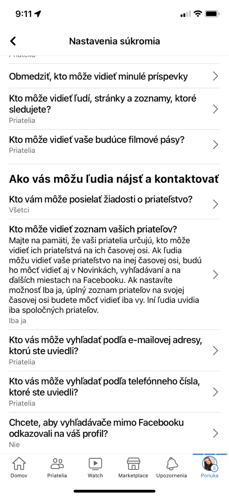 nastavenie- nastavenie profilu- súkromie a tam to je