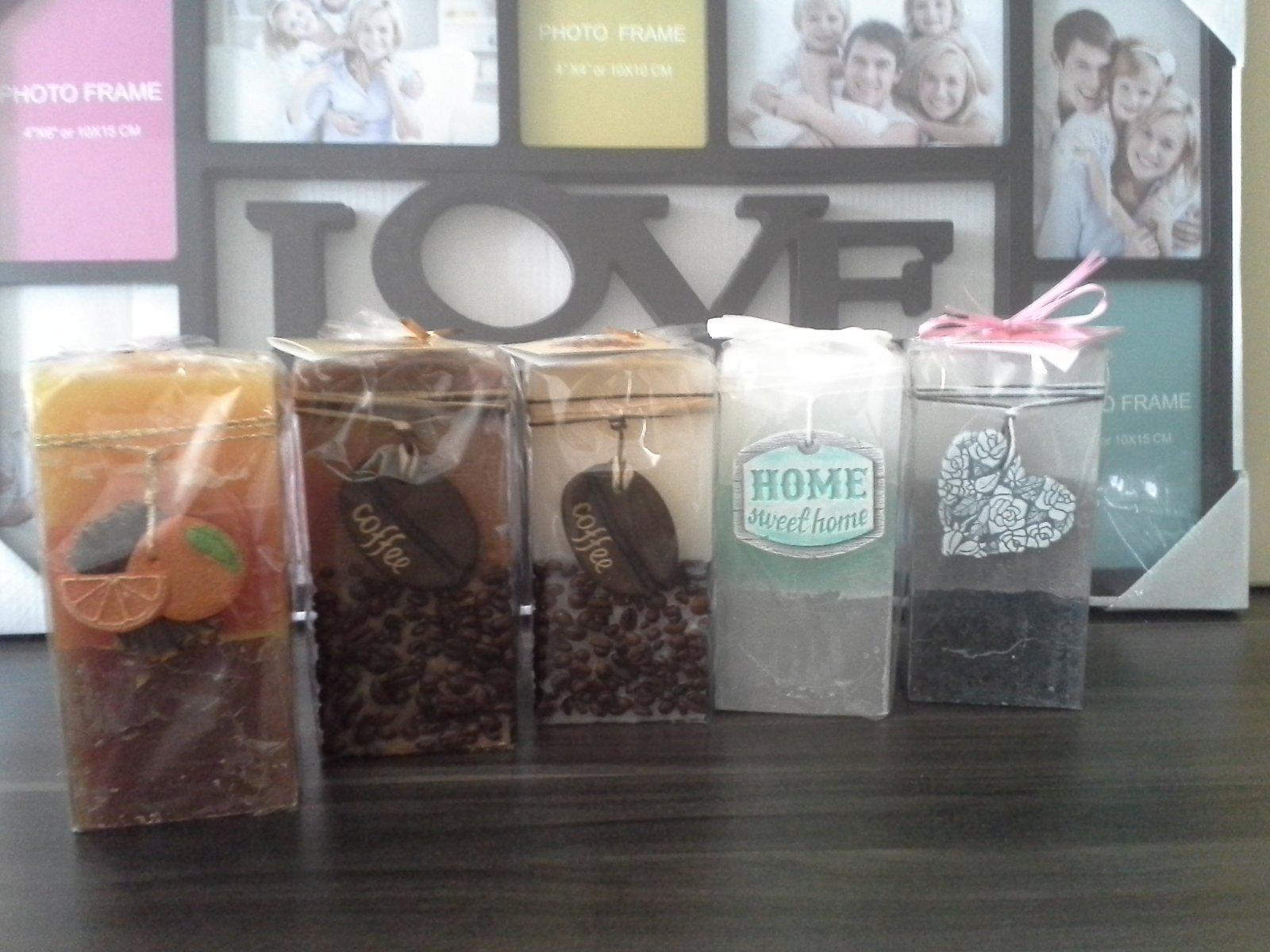 Voňavé sviečky, štvorec veľký (70x140), vône: pomaranč/škorica, káva, vôňa domova, Merci - vôňa ruží, cena 5,80e