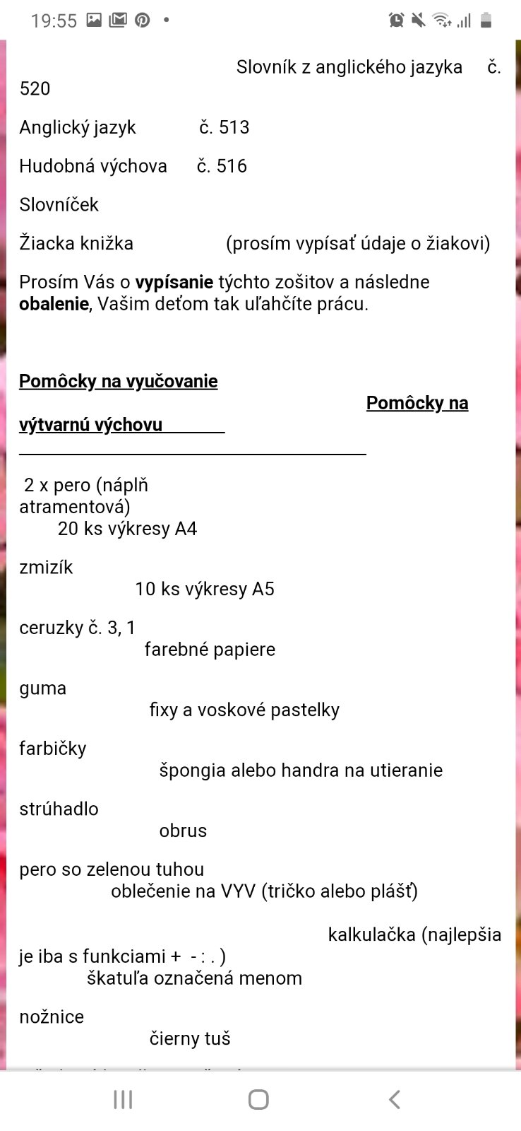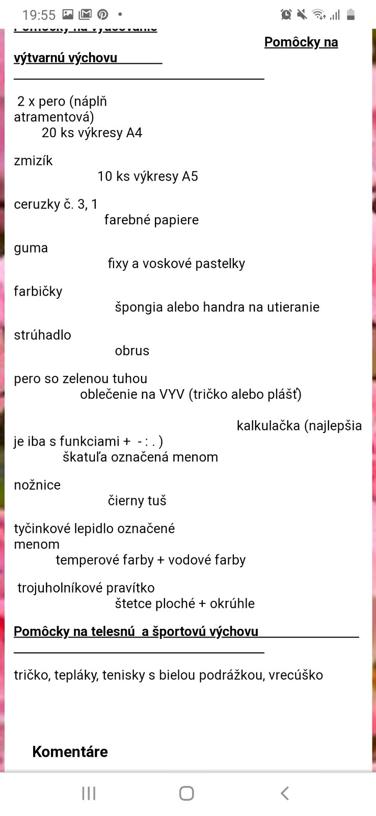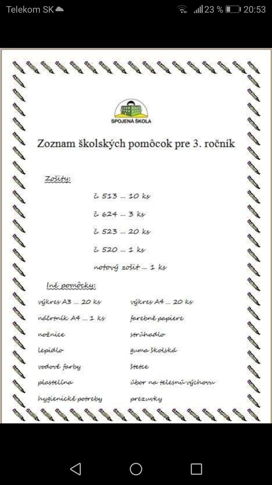 Maminky nahodou nemate niektora už zoznam čo kupit do školy? My ideme do 3.ročnika a nemam este zoznam a chcela by som to uz ponakupovať-objednať... My sme so Zš Ba - Medzilaborecka... Niektore čo tam mate detičky nahodou nemate zoznam??? Mooooooc vopred dakujem!