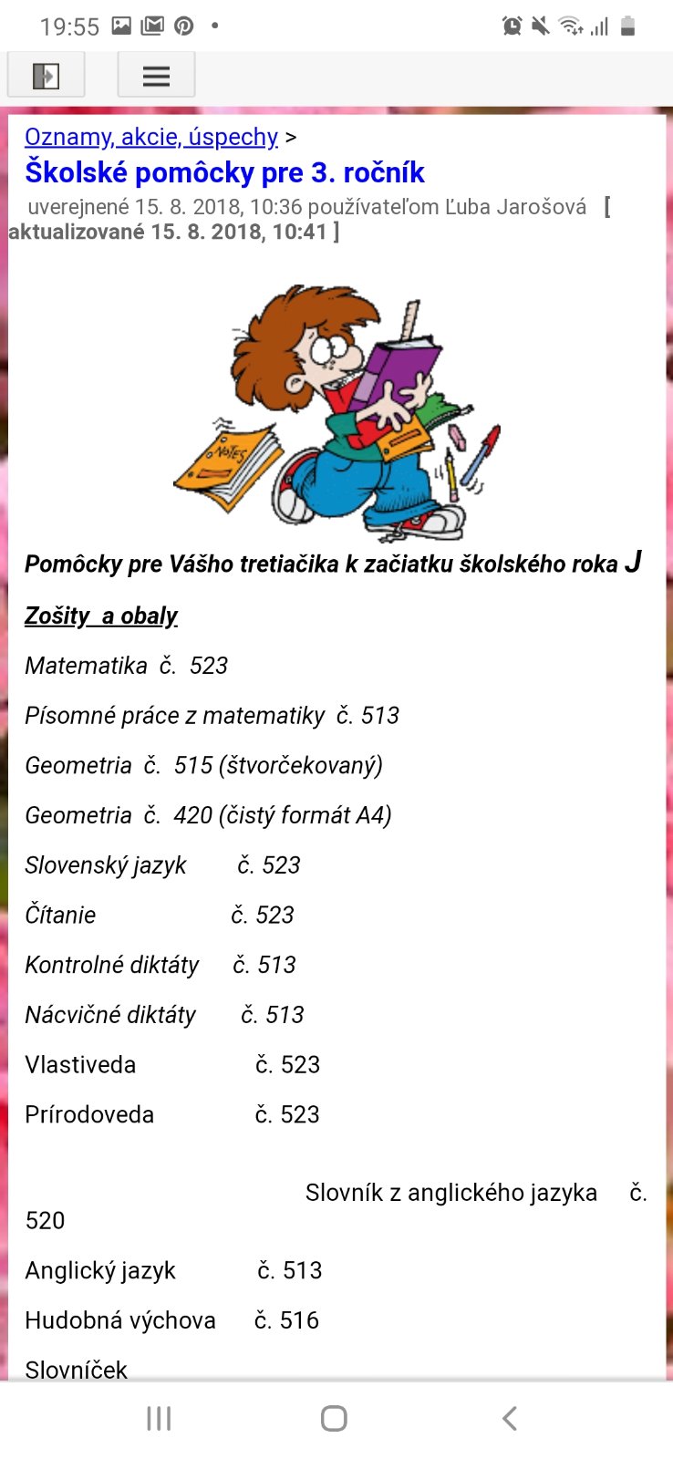 Ja som dnes na stránke našej školy našla tento zoznam pre 3. ročník