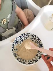 Trošku som bola zaskočená, pretože kaša nevonia po jablkách, ani po slivkách. Rovnako ani chuťovo, nie je tam cítiť toto ovocie. Chuťovo pripomína skôr mliečnu ovsenú kašu. Príprava je jednoduchá, kaša sa nehrudkavie. Malý zjedol max pol porcie, viac nezjedol.