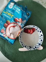 Toto bola prvá kaša, ktorú som mu pripravila a spapal ju do poslednej lyžičky. Príjemne vonia po jahodách.