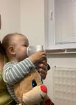 @nikolapaucinova tu mal syn cca 2roky, vtedy tam nemal tu modru gumicku okolo hlavy, ale teraz ked inhaluje tak ju uz ma a nadobku si sam drzi a pozera TV. Aktualnu foto nemam.