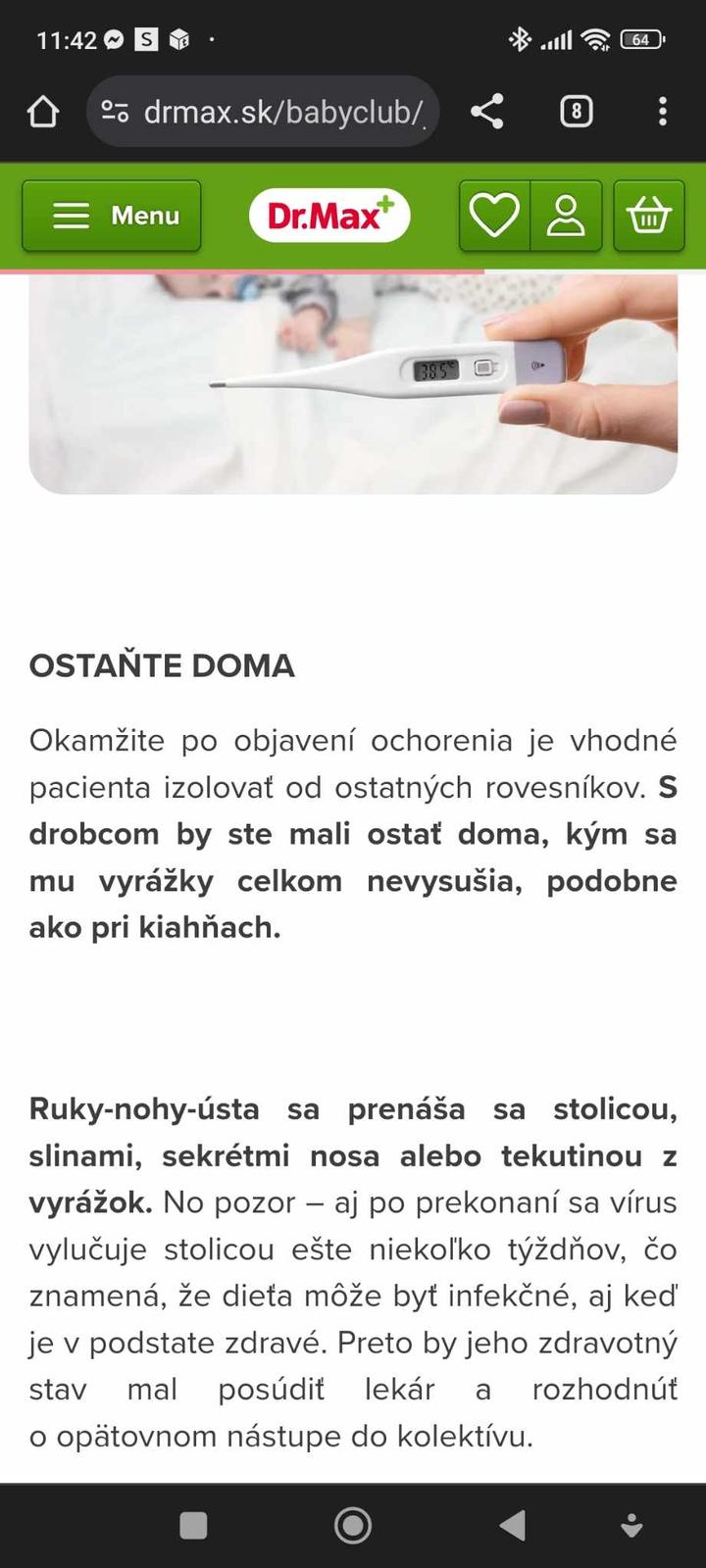 @uhnakova tak veľmi dúfam že som to už prekonala. Keď mala dcérka 6 chorobu, tu sme nedostali nikto z rodiny. Ani keď staršia mala ruky nohy ústa tak chvalabohu my nič