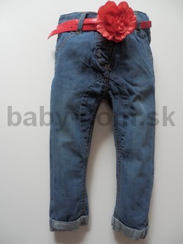 Kojenecké rifle pre dievčatá v modrom prevedení s krásnym červeným opaskom s kvetinkou. Nová cena: 8,90eur