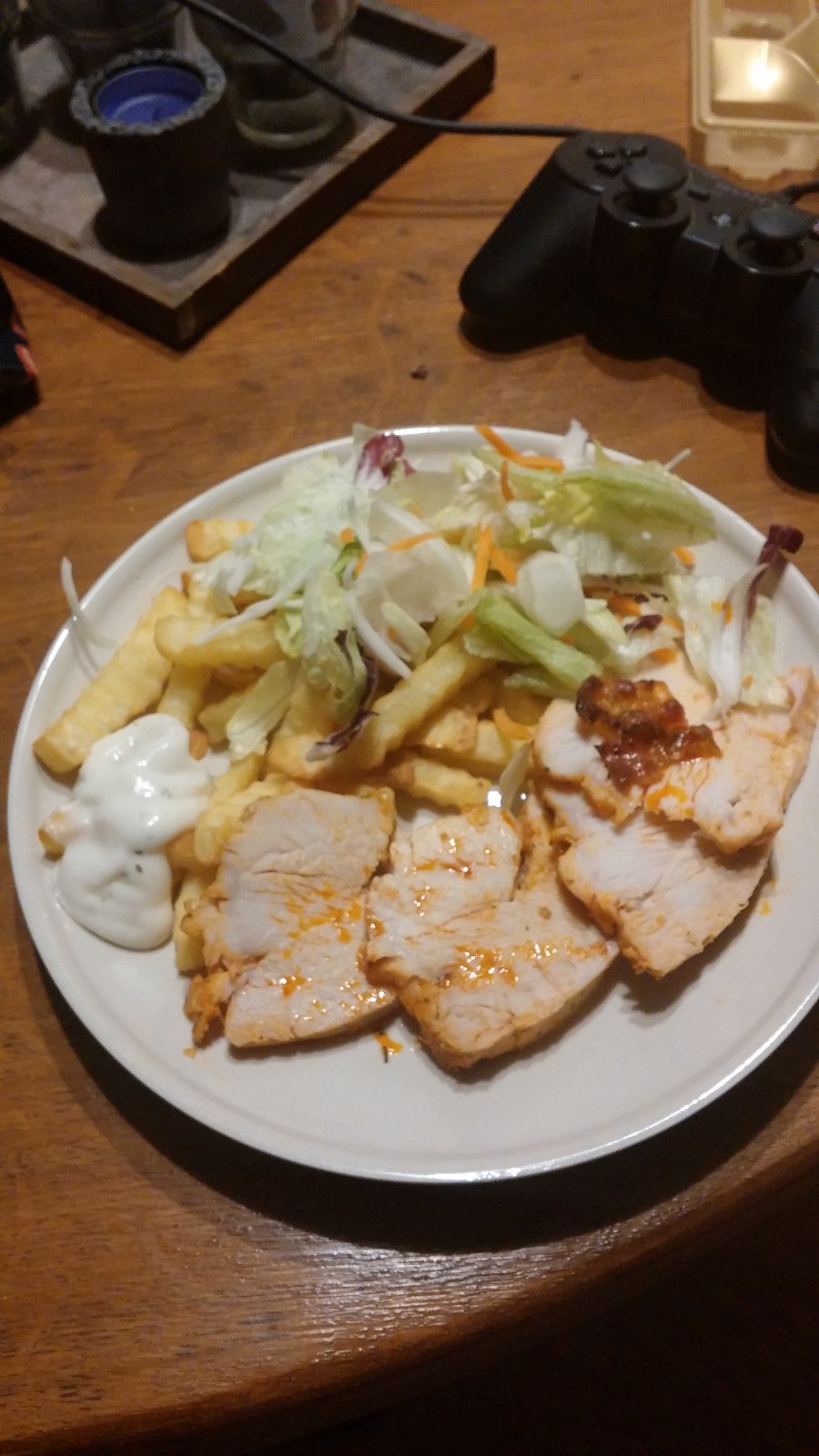 morčacie prso pečené s paradajkami, slaninou a brie s hranolkami a šalátom