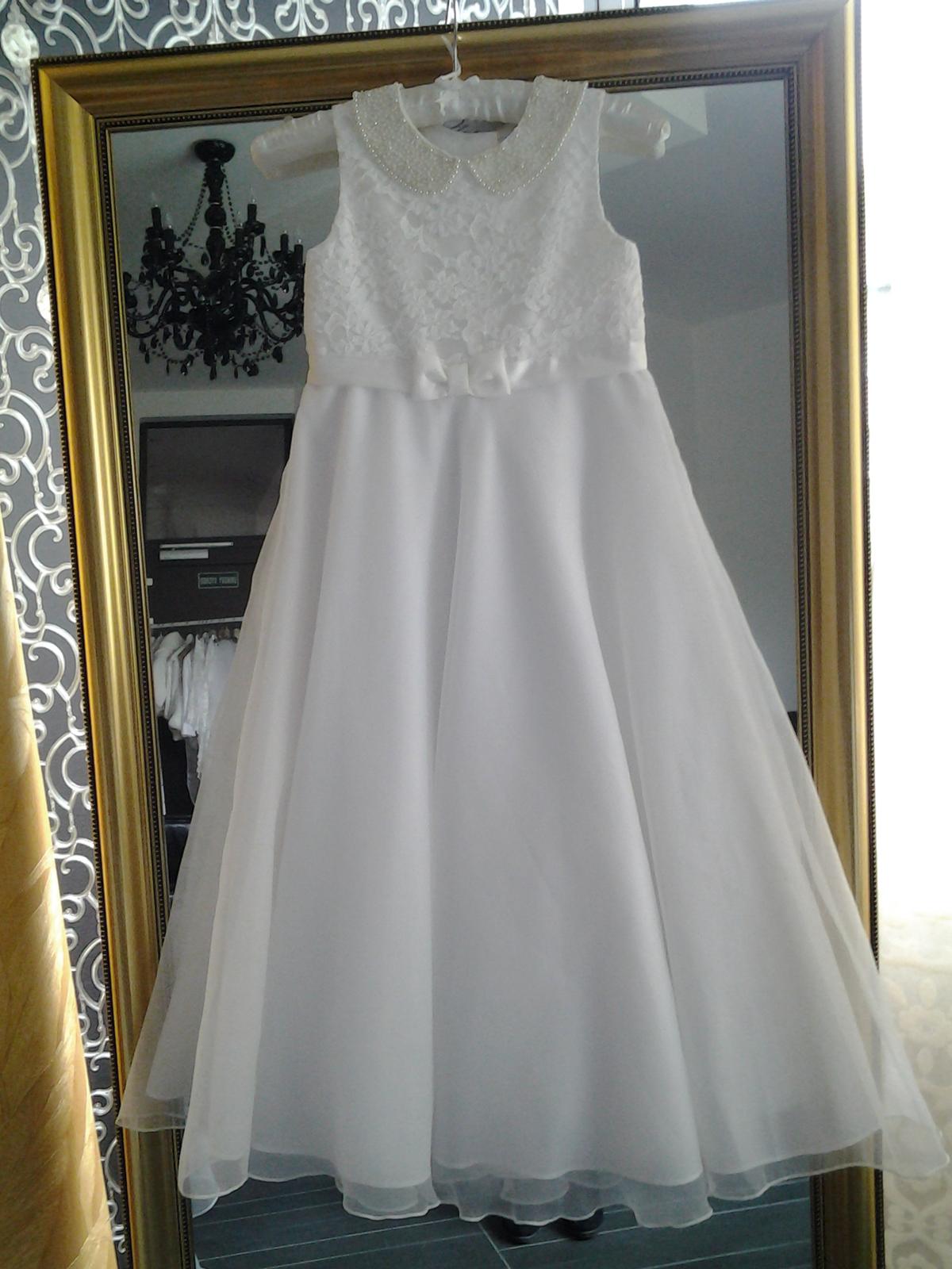 Maslové šaty s perličkovým golierikom, veľkosť: 10-12 rokov