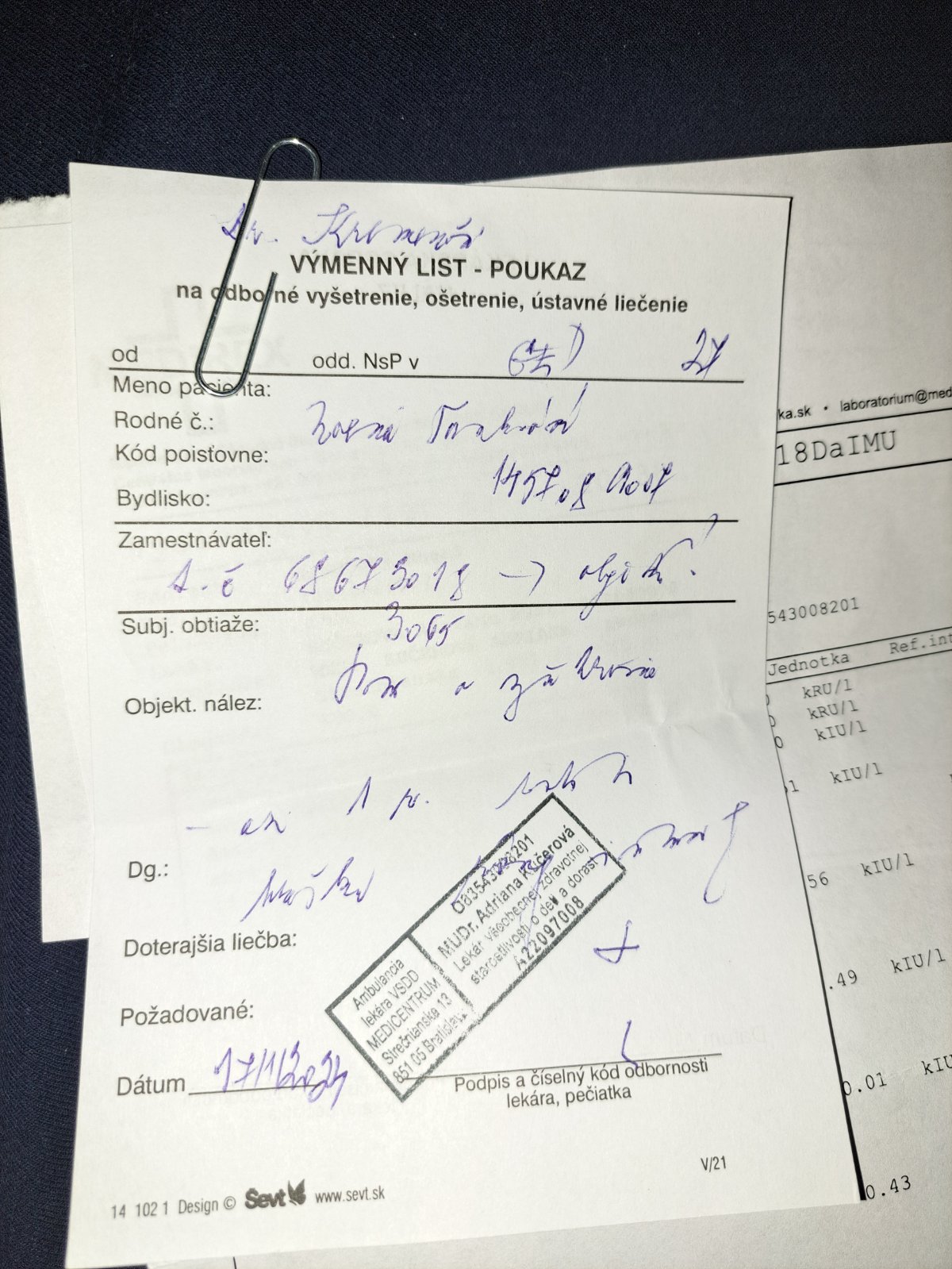 Ahoj viete mi niekto precitat toto po dr. Bola som pre výmenné listky jeden mi dala ku detskej gyn. A tento presne uz neviem naco je zabudla som 🫣