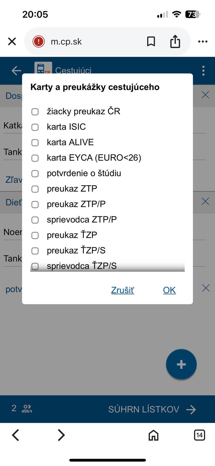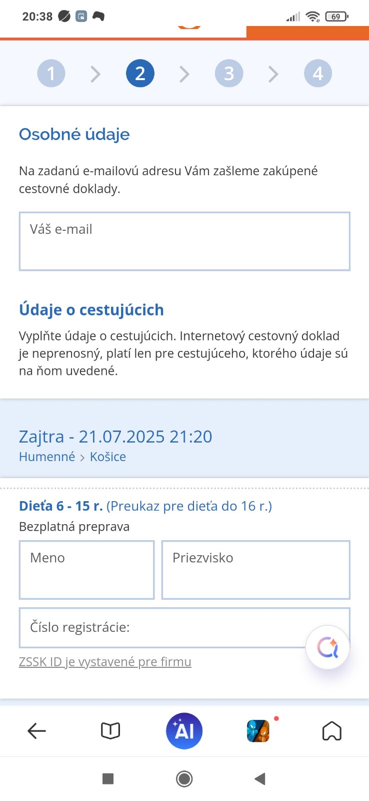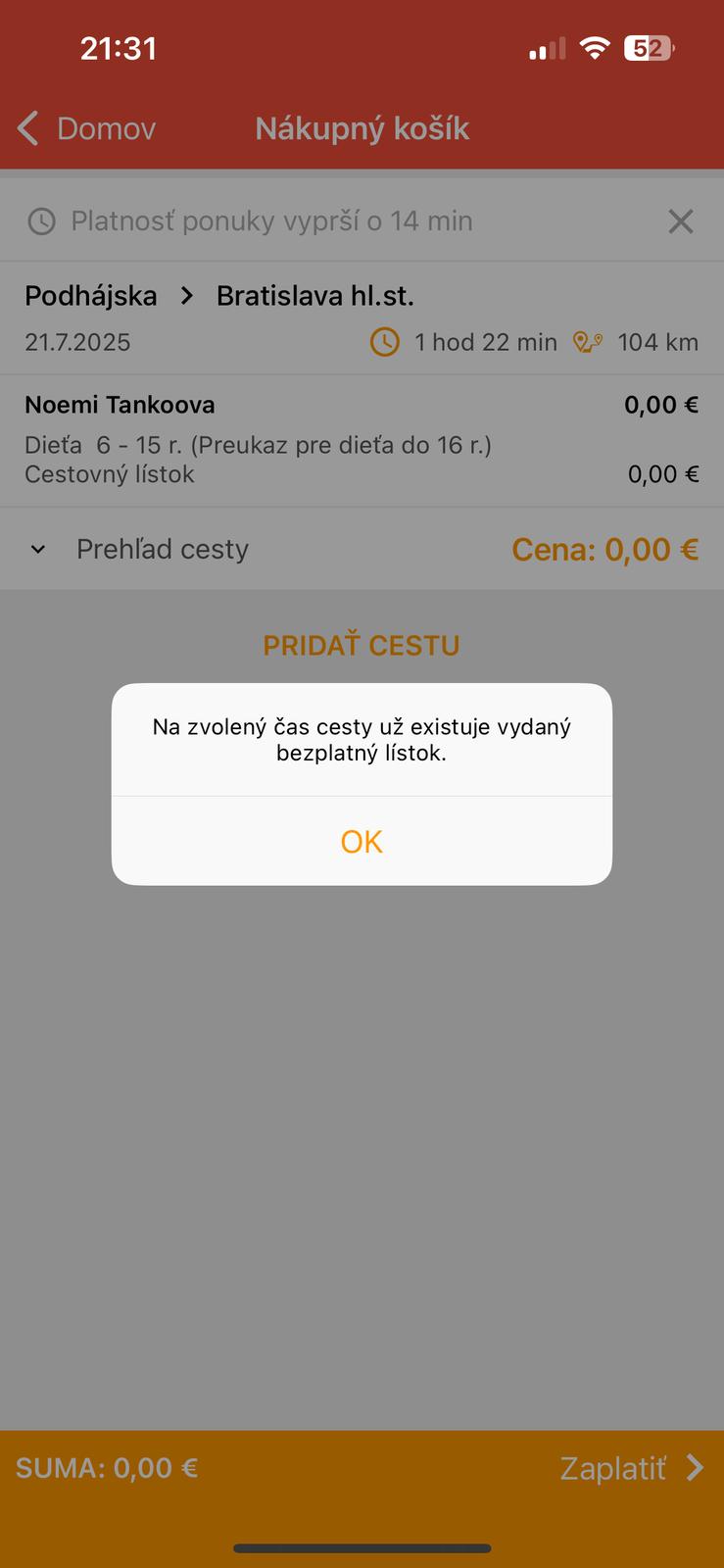 Toto mi ukazuje keď chcem kúpiť lístok pre dcéru a mňa